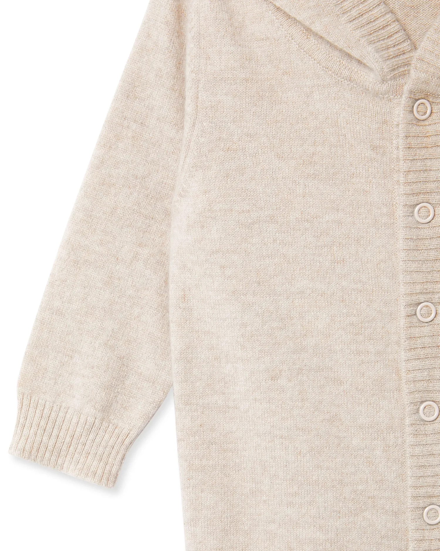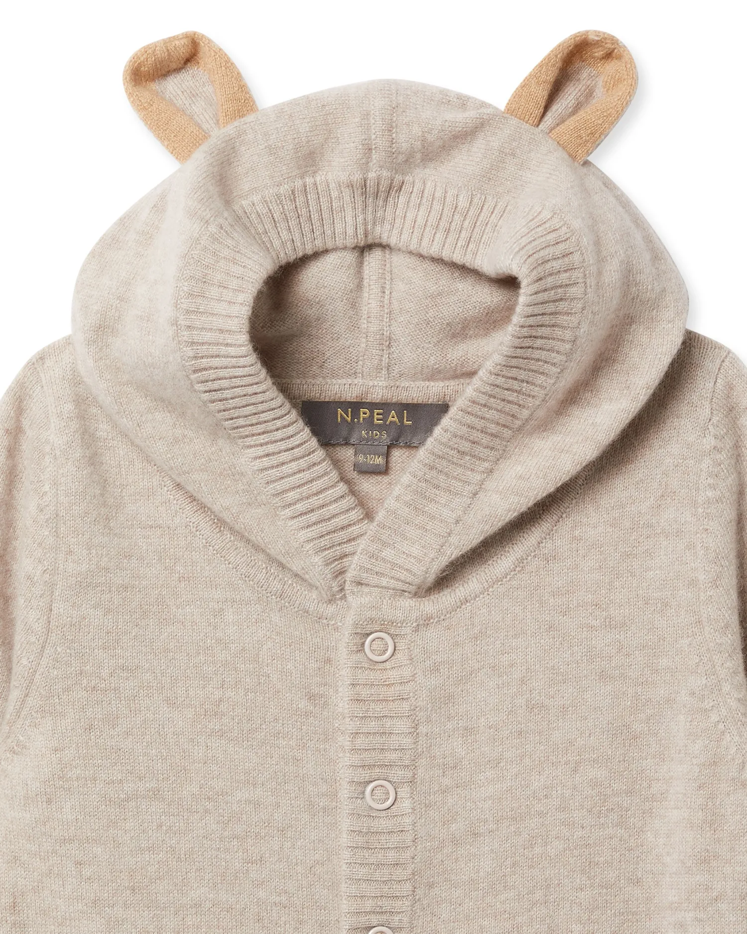 Quite the most delightful sleepsuit you will ever find.- Made from 100% Mongolian Organic Cashmere – Matching rib trim on placket, hem and cuffs – Easy to use poppers to fasten – Gorgeous bear ears for the extra cute factor – Sumptuously soft and comfortable – Easy to fit with full popper opening- Care: Hand Wash Organic cashmere: organic dyes and detergents, free from fertilizer and pesticides, find out more here