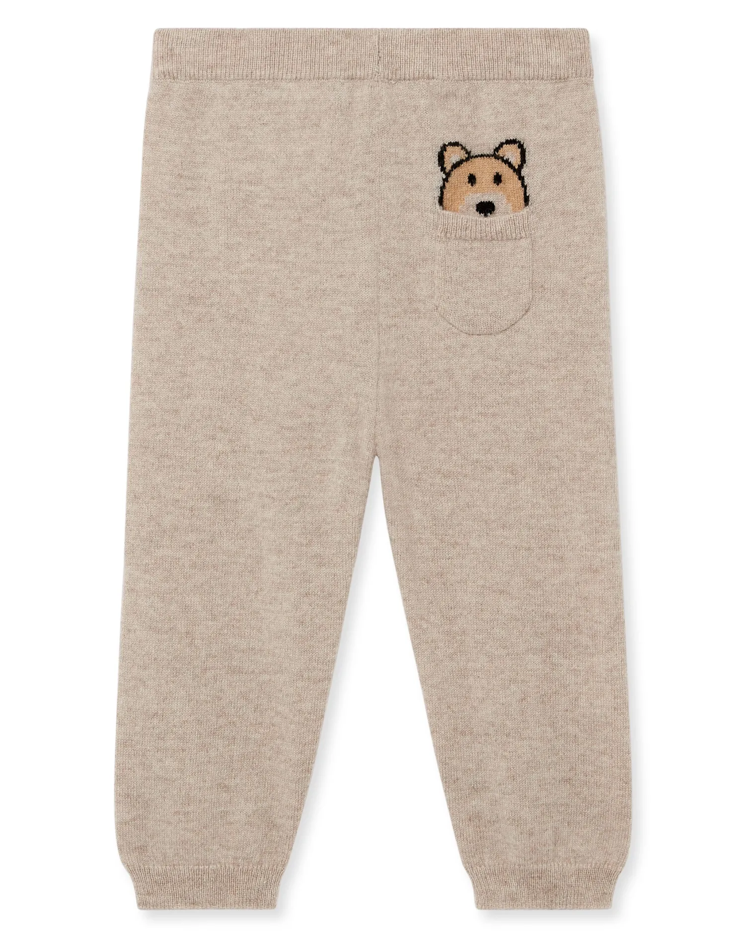 Gorgeous new bear pocket cashmere leggings.- Made from 100% Mongolian Organic Cashmere – Superbly soft against the skin – Cute new design with baby bear peeking out of the pocket – So gentle and smooth, perfect for little legs- Care: Hand Wash Organic cashmere: organic dyes and detergents, free from fertilizer and pesticides, find out more here