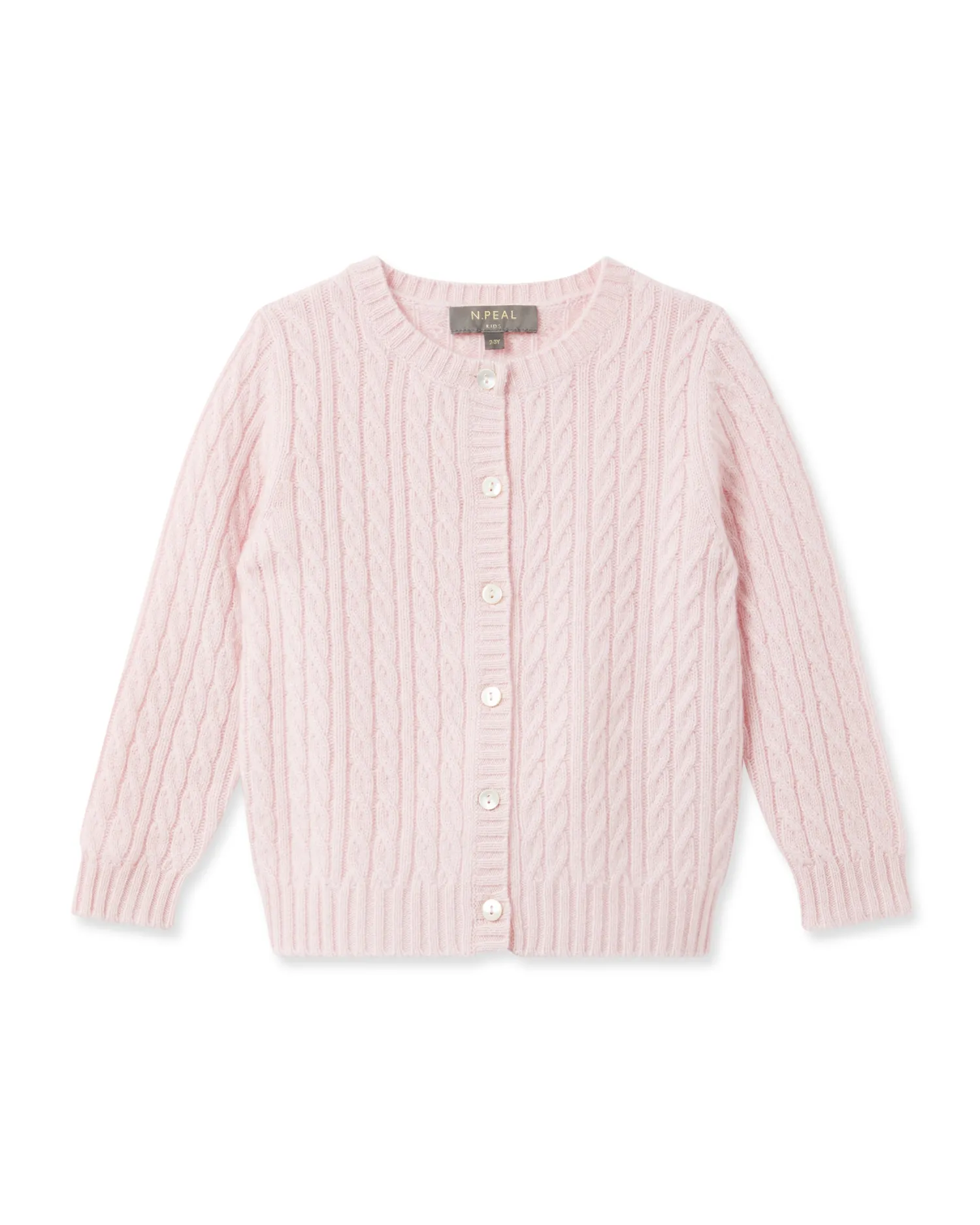 Exquisite cable design in the shape of a fabulous cashmere cardigan for children. Made from 100% Organic Mongolian Cashmere – Beautiful mini cable knit – With matching rib knit on hem, cuffs, placket and collar – Five pearl buttons to close – Fabulous worn with matching N.Peal cashmere pieces – Super soft and comfortable against the skin- Care: Hand Wash Organic cashmere: organic dyes and detergents, free from fertilizer and pesticides, find out more here