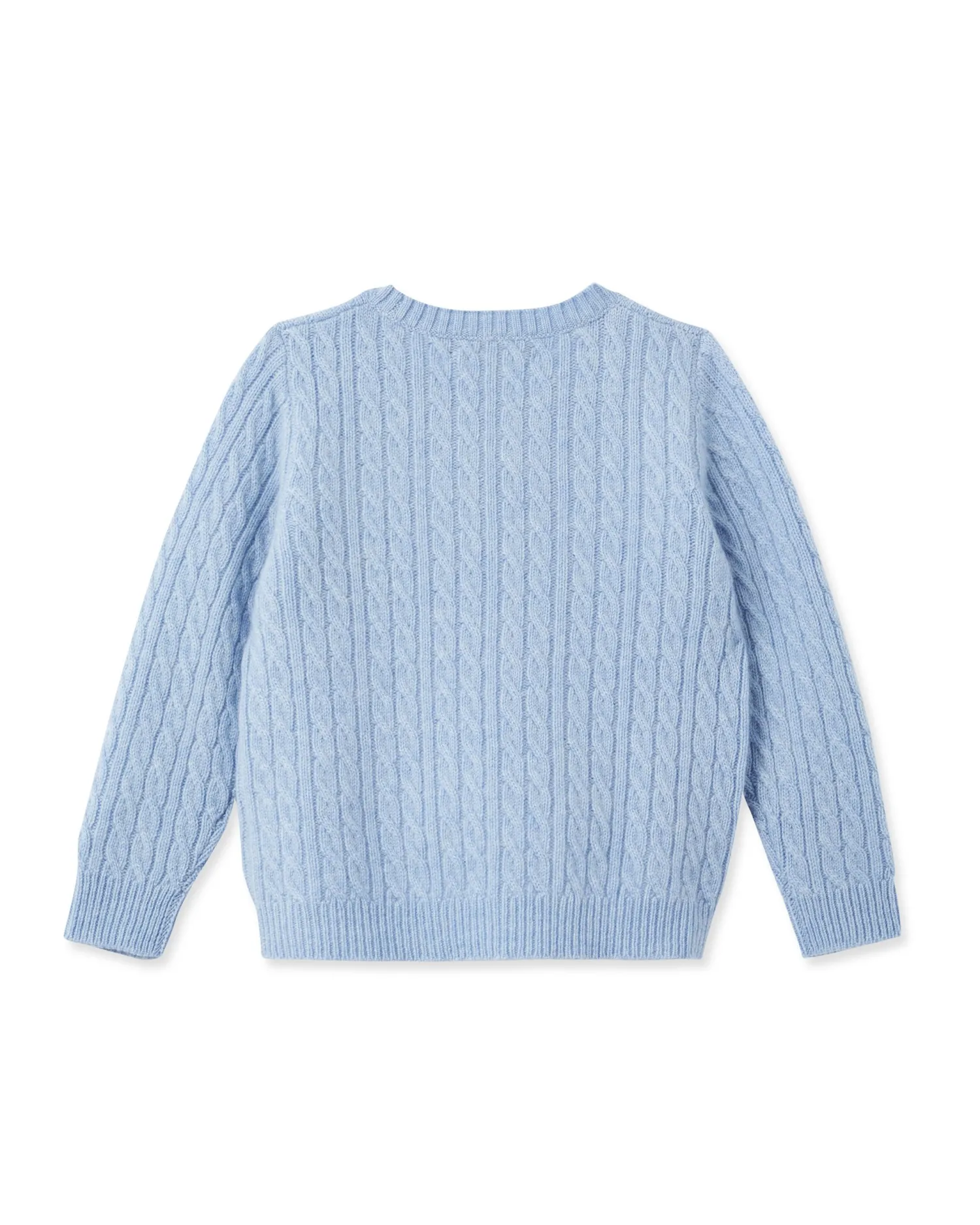 Simplicity in a gorgeous round neck cable jumper for children. Made from 100% Organic Mongolian cashmere – Beautifully soft cable knit design – Matching ribbed collar, cuffs and hem – Super soft against the skin, ideal for little ones- Care: Hand Wash Organic cashmere: organic dyes and detergents, free from fertilizer and pesticides, find out more here