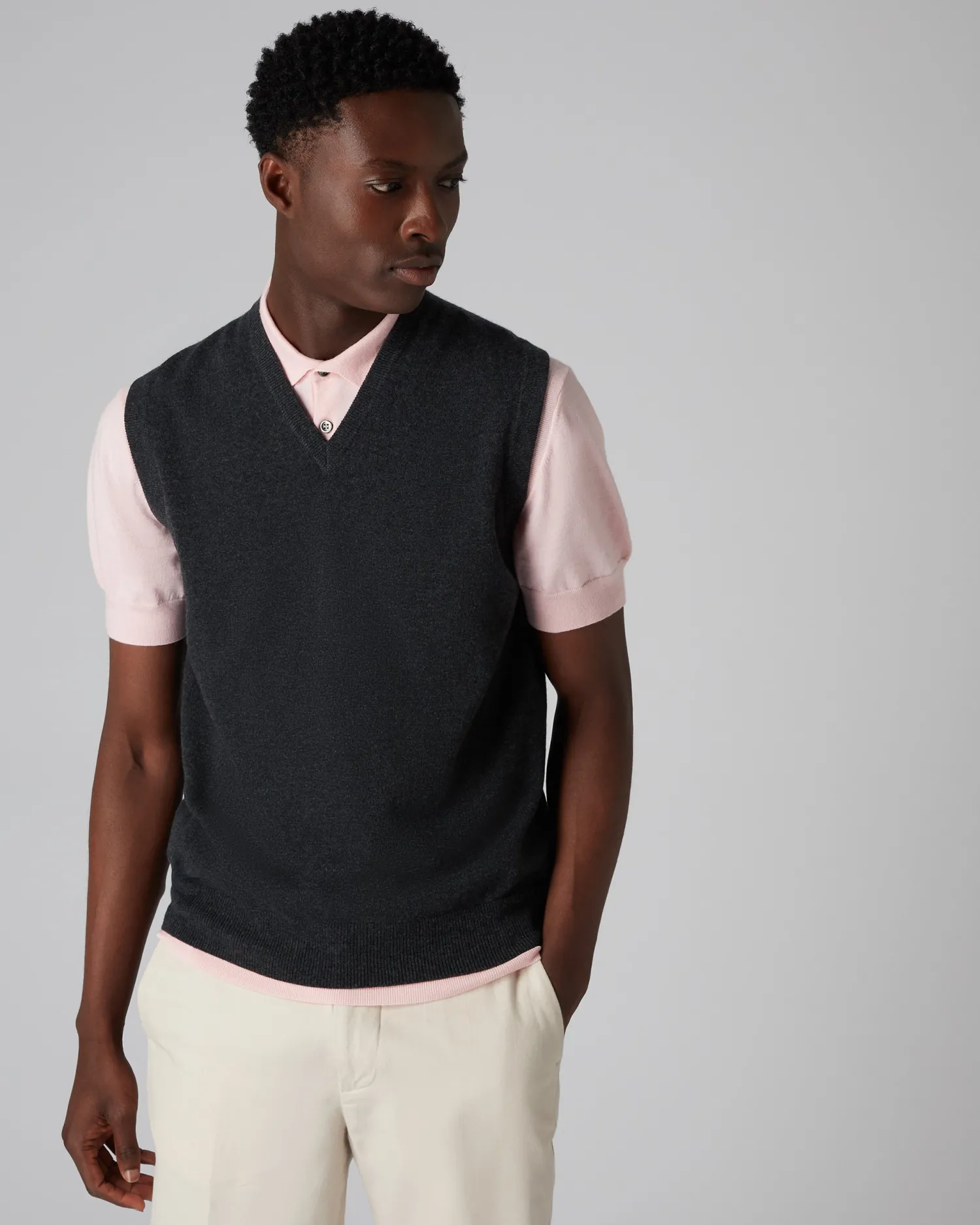 A firm cashmere favourite for many – The Westminster pullover. Made from 100% Mongolian Organic Cashmere – Essential transitional piece – Perfect for layering with shirts or polos – Works perfectly over a shirt in Summer or under a jacket in Winter- Model is wearing size Medium- Care: Hand Wash Organic cashmere: organic dyes and detergents, free from fertilizer and pesticides, find out more herenFind our full range of Men’s Cashmere Slipovers here.