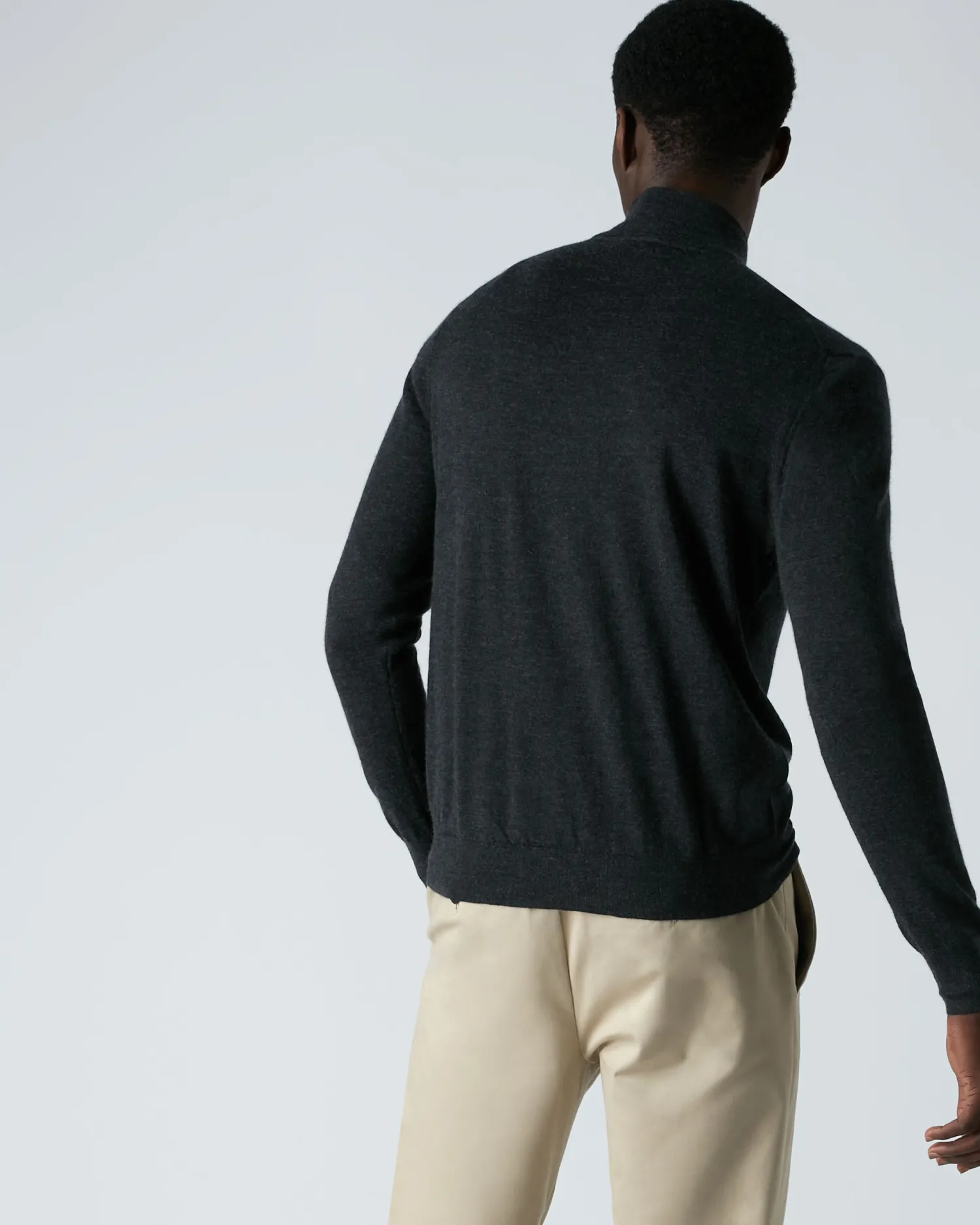 The Regent, our half zip fine gauge Summer weight sweater. Made using a worsted yarn comprising 70% Cashmere and 30% Silk – A lighter Summer-weight garment – The perfect transitional piece – 30% Silk gives a coolness to the touch – Elegant half zip style with Alcantara trim – Great worn over formal shirts and T shirts alike – A sartorial staple, an investment in enduring style- Our fine gauge products have a naturally slimmer fit, if you’d like a looser fit (like our other products) or are between sizes, we suggest you size up- Model is wearing size Medium- Care: Dry Clean OnlynFind our full range of Men’s Fine Gauge Cashmere here.