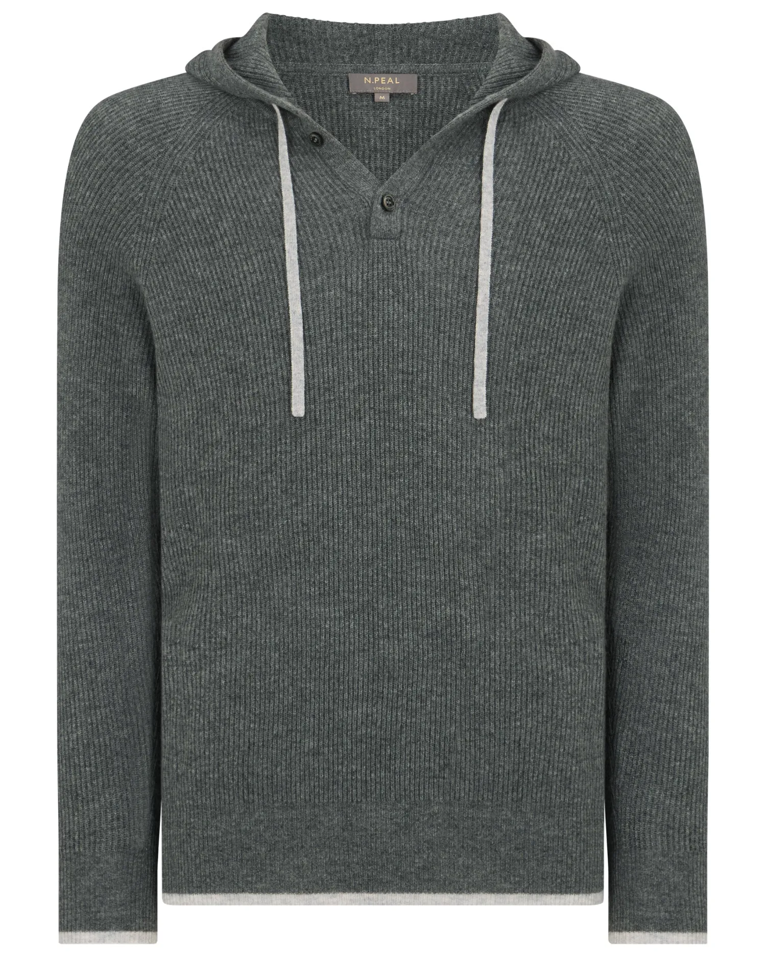 Another beautiful cashmere hoodie to add to your collection. Made from 100% organic Mongolian cashmere – Beautifully styled and supremely soft – Great over gym kit or around the house – Ideal for travelling – Generous rib stitch knit – Fumo grey contrast drawstring and tipping – Easy-to-wear, warm and comfortable- 1Ply – Model is wearing size Medium – Care: Hand Wash Organic cashmere: organic dyes and detergents, free from fertilizer and pesticides, find out more here