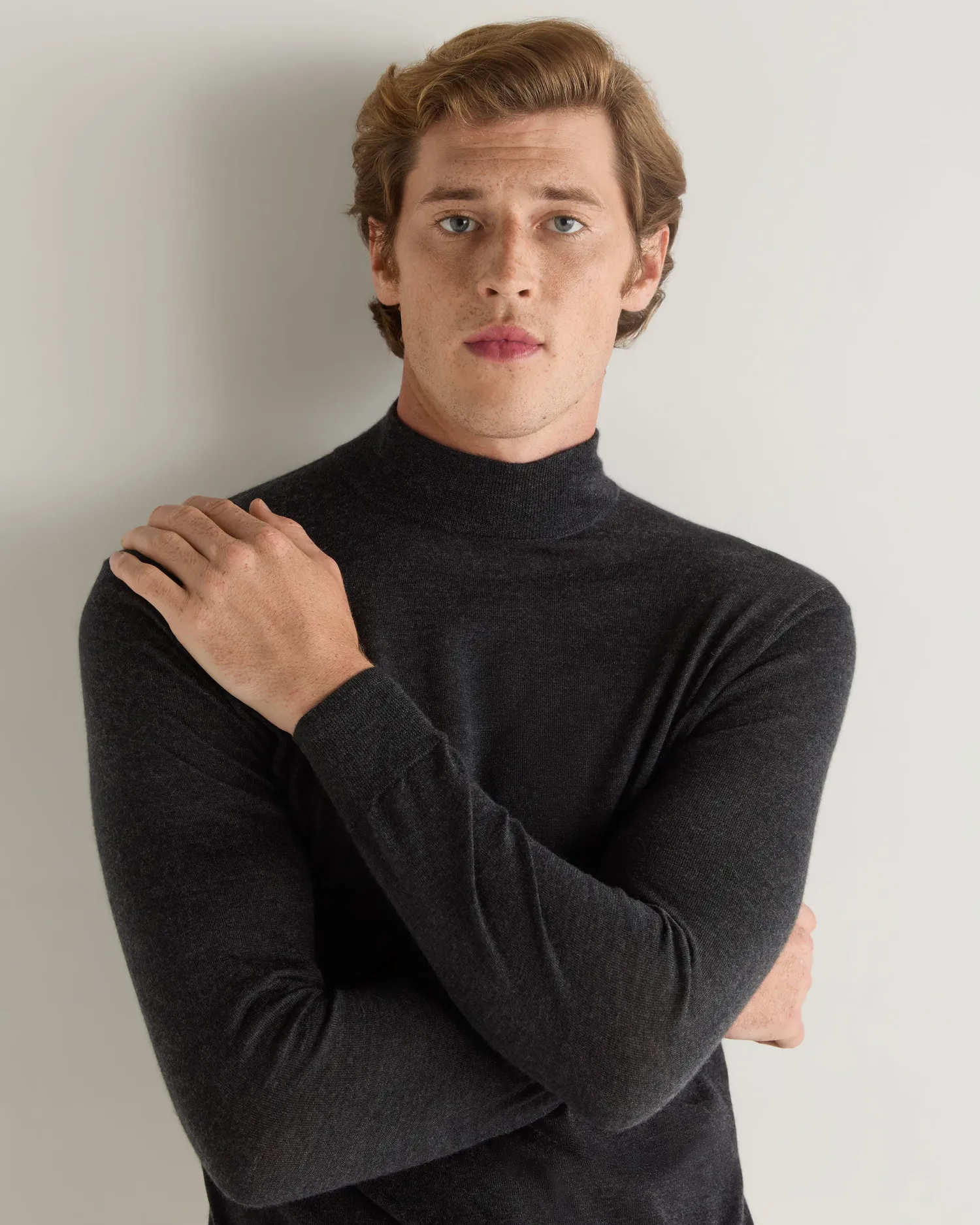 A welcome addition to our fine gauge collection for this season. Made from 70% cashmere and 30% Silk – Beautiful roll neck style – Supersoft against the skin – Wonderful layering piece- Our fine gauge products have a naturally slimmer fit, if you’d like a looser fit (like our other products) or are between sizes, we suggest you size up- Model is wearing size Medium- Care: Hand WashnFind our full range of Men’s Fine Gauge Cashmere here.