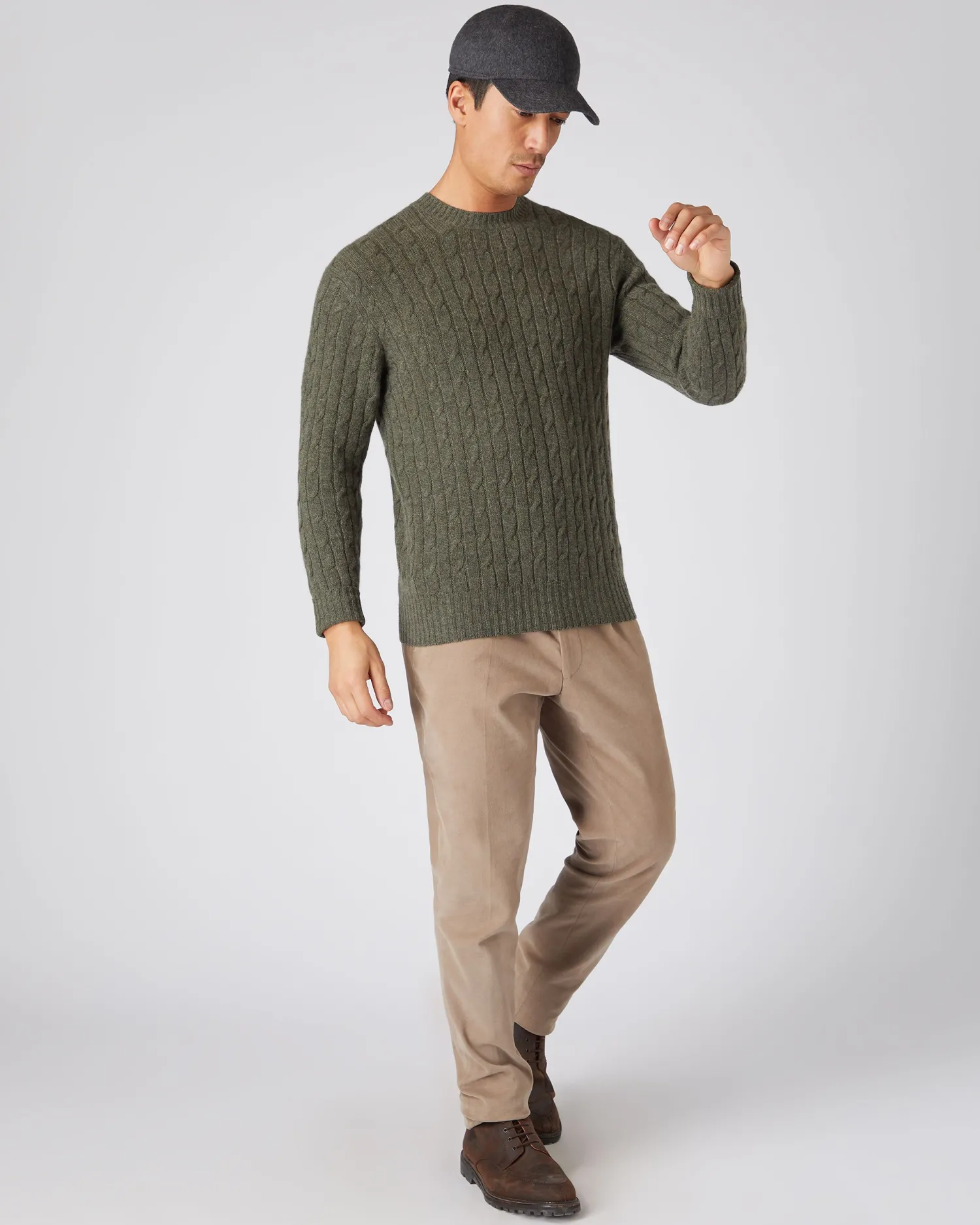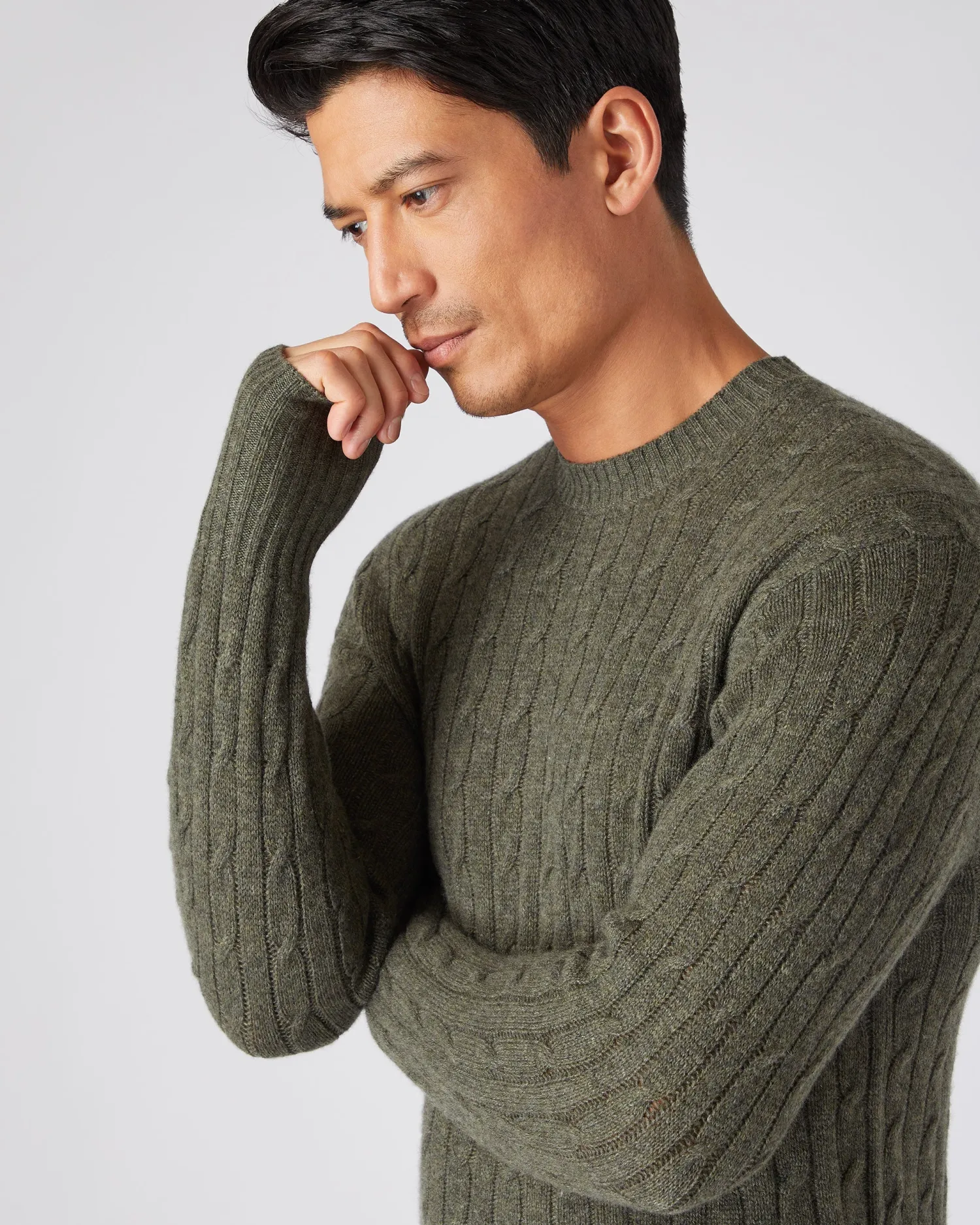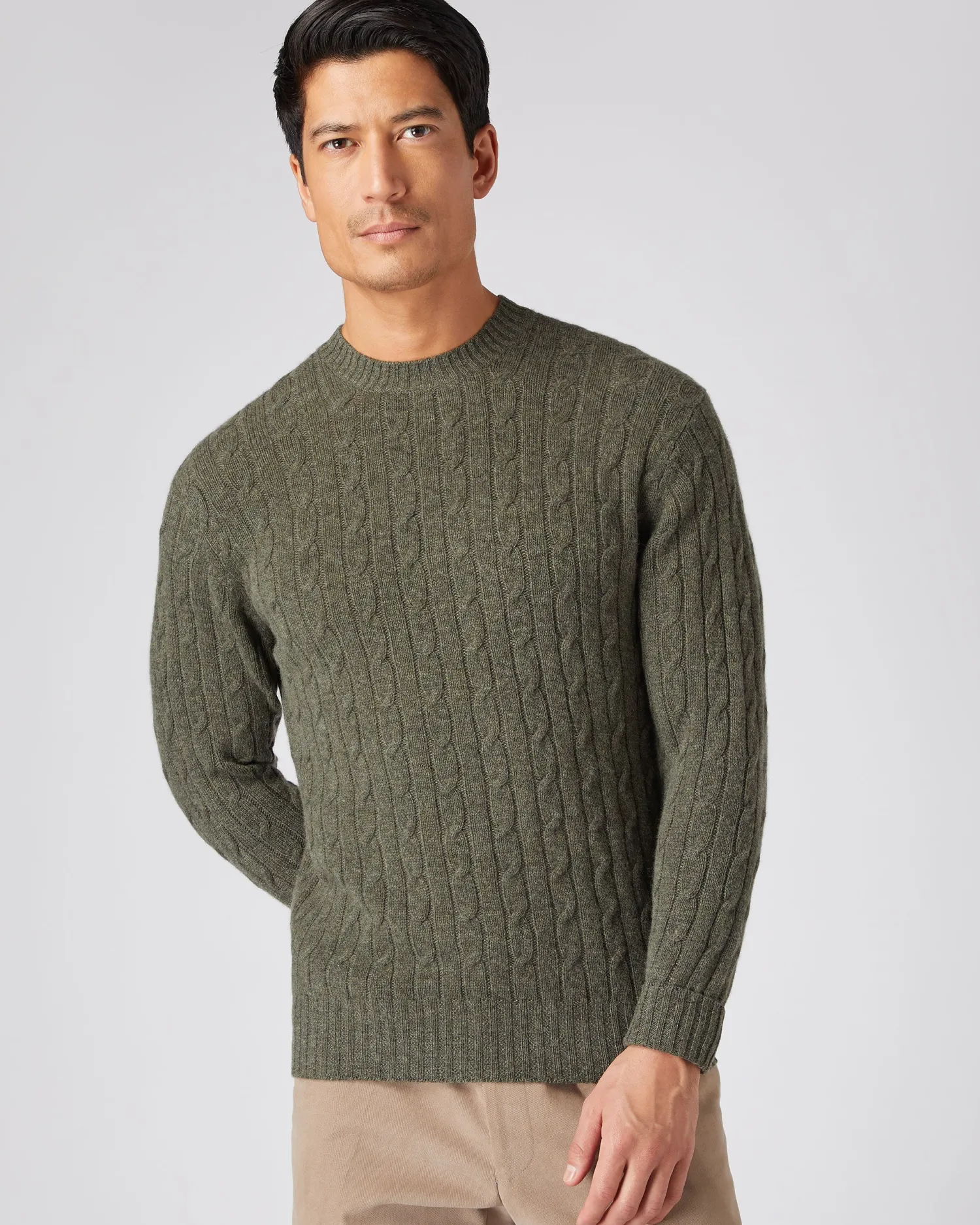 Here we see the Thames cable round neck sweater, a firm cashmere favourite. Made from 100% Mongolian organic cashmere – Classic look with the twist of a cable knit texture – Wearable style perfectly poised for dressing up or down – Stylish and warm, a popular choice – 2Ply- Model is wearing size Medium – Care: Hand Wash Organic cashmere: organic dyes and detergents, free from fertilizer and pesticides, find out more here