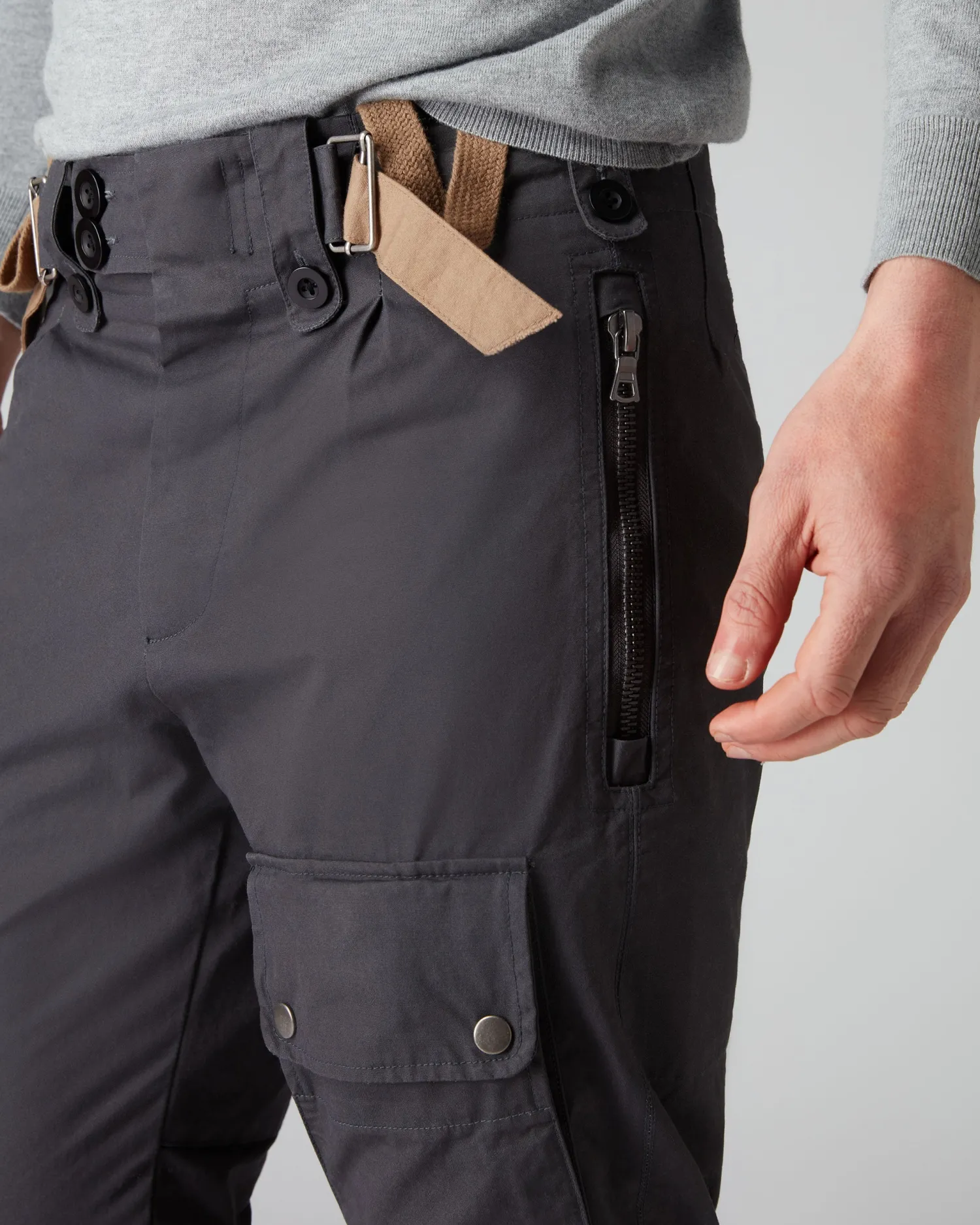 Our most exciting new product of the season, the eagerly awaited NO TIME TO DIE (2021) combat trouser as worn by James Bond. Made from 100% Cotton- Designed in partnership with costume designer Suttirat Larlarb Gun metal zips and poppers- 3 pockets, two zipped and one poppered- Epitomises the modern and informal utility look- Marries perfectly with the N.Peal commando sweater (NPG007526) as seen in the film- Fabulous looking trouser- Wear with the 007 braces (NPG107744A) to complete the look- Care: Hand Washn nNO TIME TO DIE and related James Bond Indicia © 1962-2024 Danjaq, LLC and Metro-Goldwyn-Mayer Studios Inc. NO TIME TO DIE and related James Bond Trademarks and trademarks of Danjaq, LLC. All Rights Reserved.