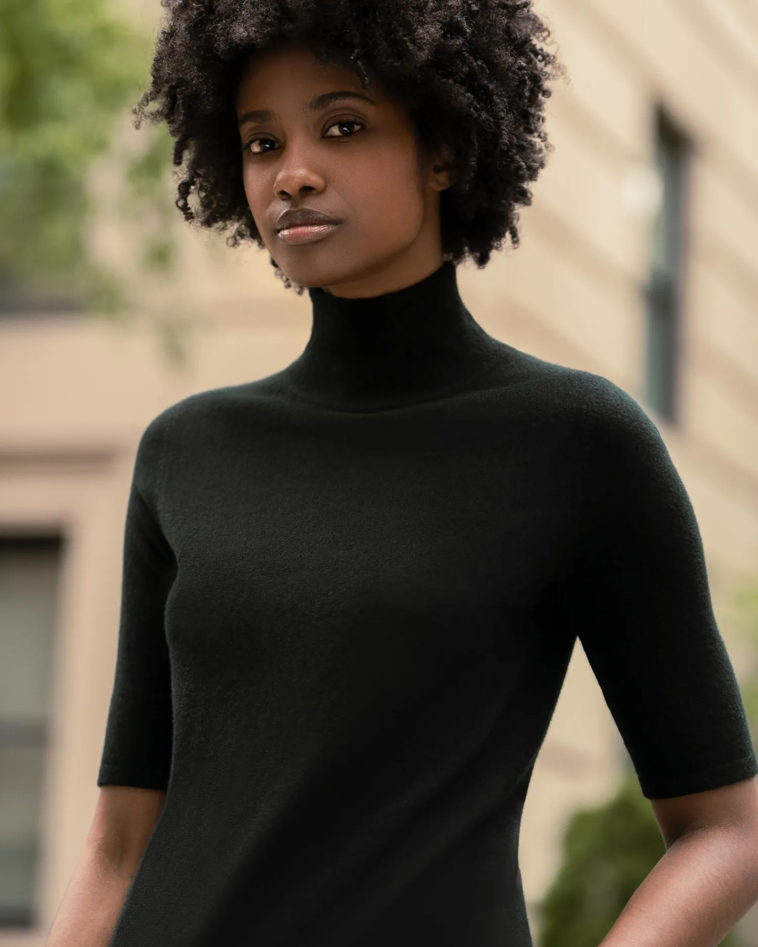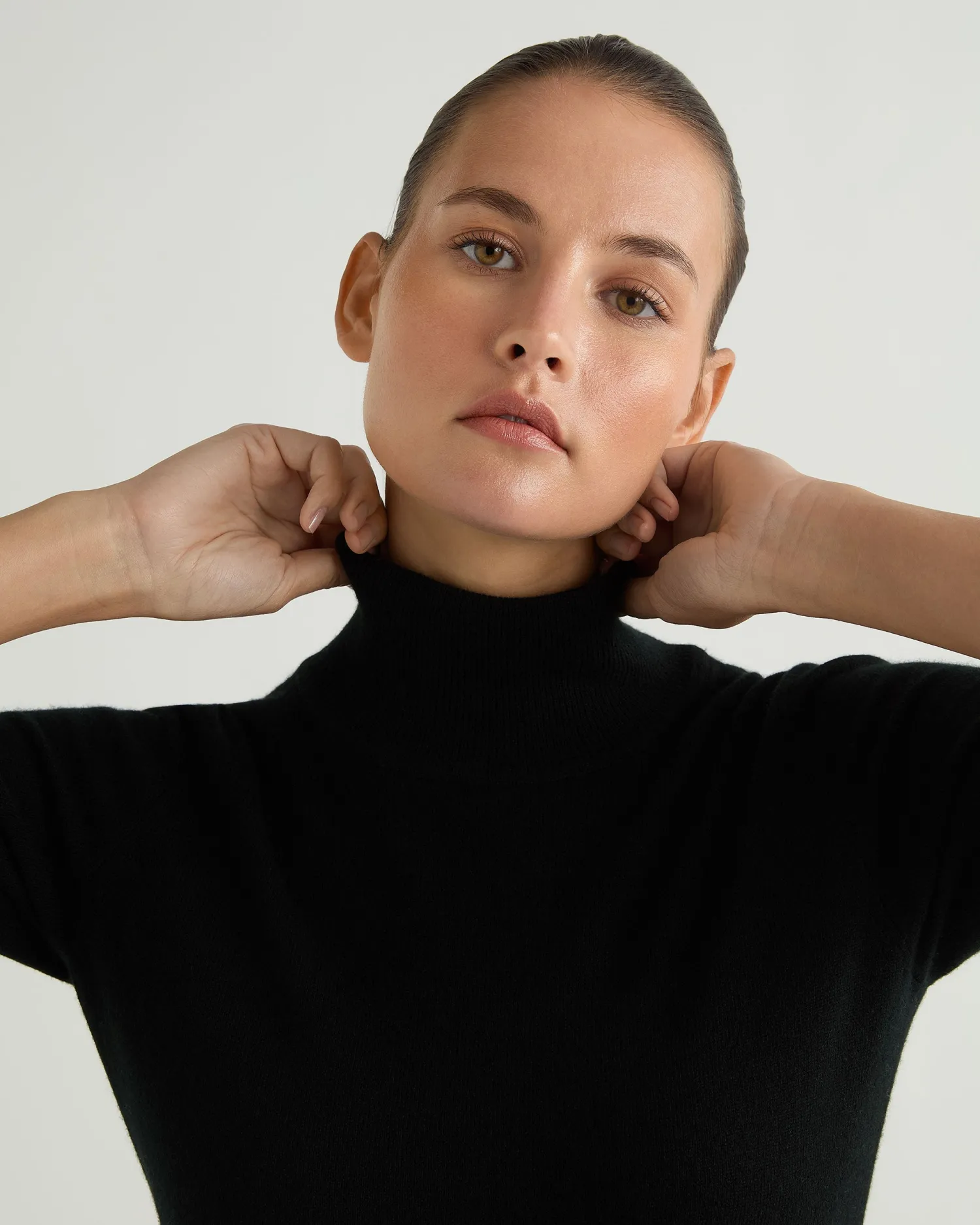Simplicity meets sophistication with our new mock neck T-shirt. This piece transitions from casual to chic, embodying N.Peals commitment to exceptional quality and timeless style. Made from 100% Mongolian organic cashmere – Versatile piece to wear on its own or layer up on colder days – Incredibly soft against the skin – Fabulous addition to every wardrobe – 1ply – Model is wearing size Small – Care: Hand Wash Organic cashmere: organic dyes and detergents, free from fertilizer and pesticides, find out more here