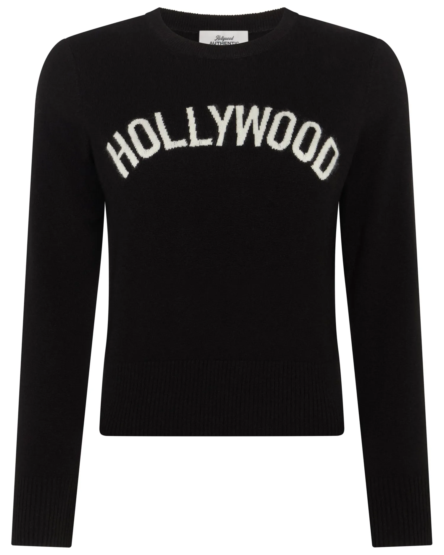 Hollywood Authentic’s relaxed crew neck is expertly crafted from 100% organic Mongolian cashmere and pays homage to the Varsity sweater: A cultural icon of 1950’s America and the silver screen. nAvailable in black and red Made from 100% organic Mongolian cashmere- Cropped style with matching rib on cuffs and hem- Sumptuously soft against the skin- Discreet ‘HA’ embroidery on rear neck- 1ply- Hand Wash