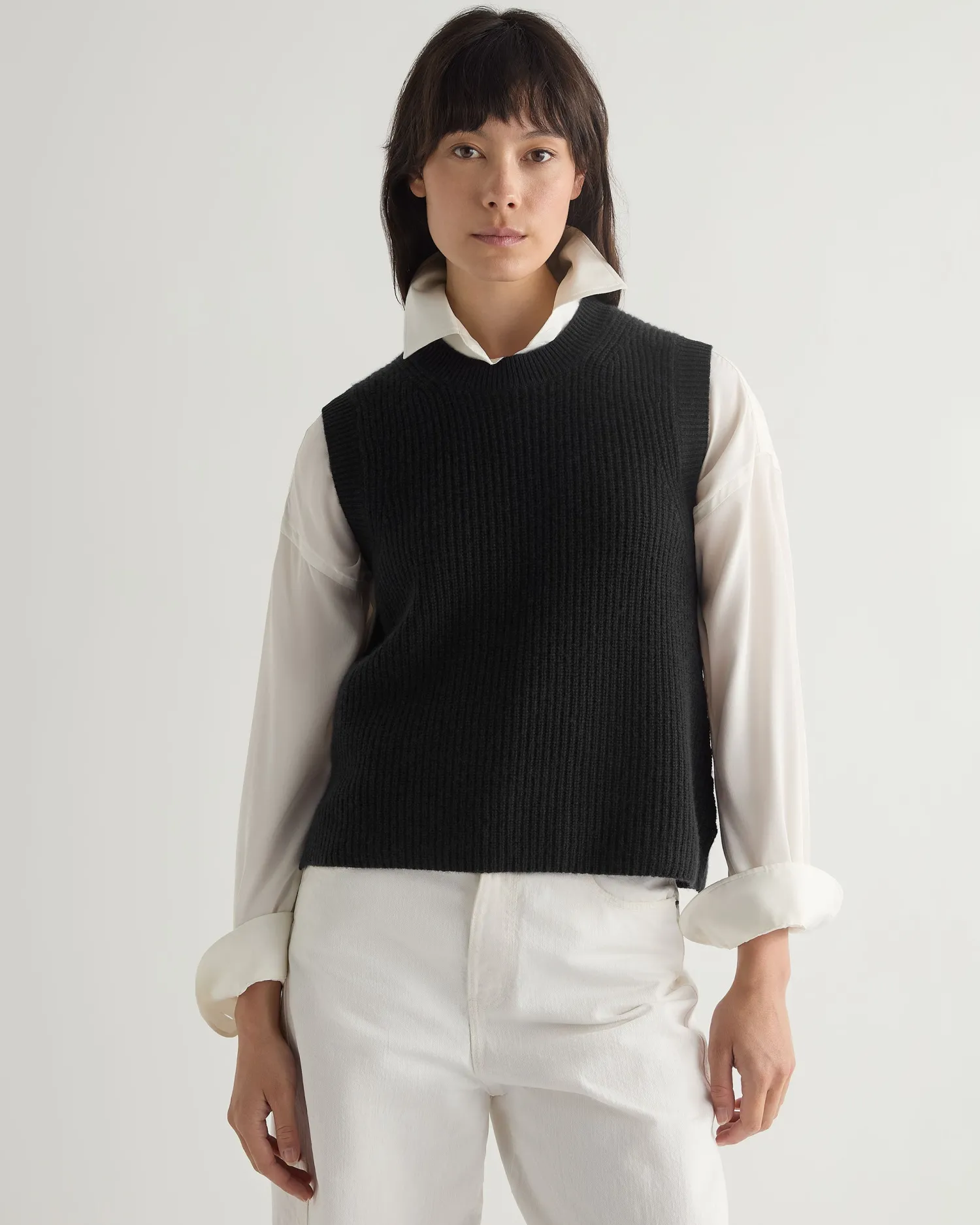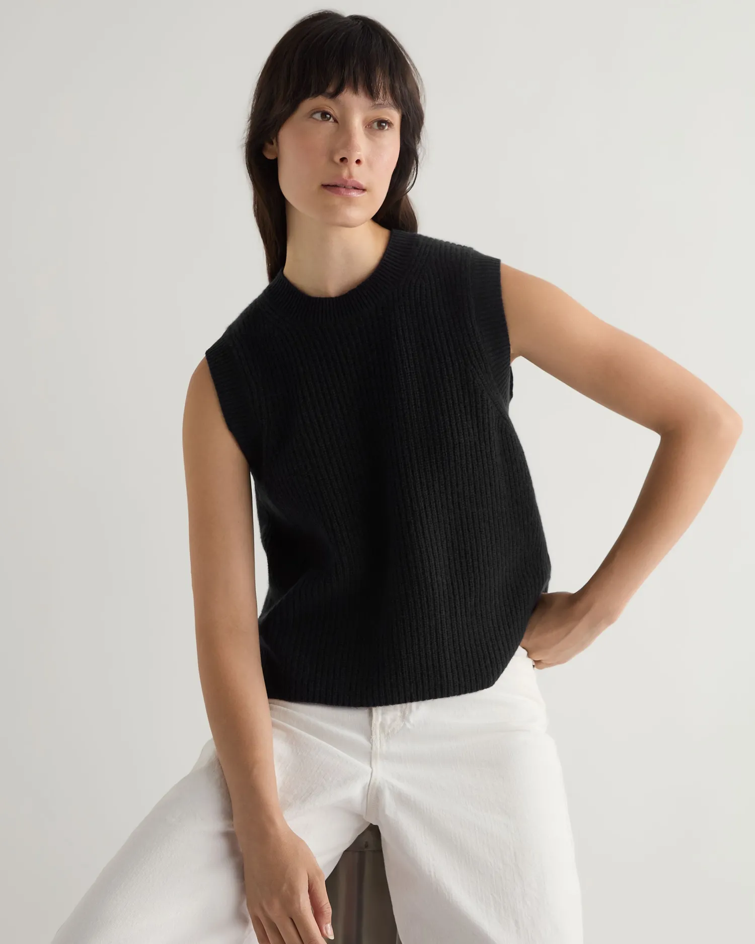This completely new sleeveless ribbed sweater is the perfect blend of sophistication and comfort. Made from the finest cashmere, this versatile piece offers a luxurious feel against the skin while providing a sleek, contemporary look. Made from 100% Mongolian organic cashmere – Luxurious and comfortable – Popular ribbed knit design – Ideal for layering or wearing solo, suitable for various occasions – 2ply – Model is wearing size Small – Care: Hand Wash Organic cashmere: organic dyes and detergents, free from fertilizer and pesticides, find out more here