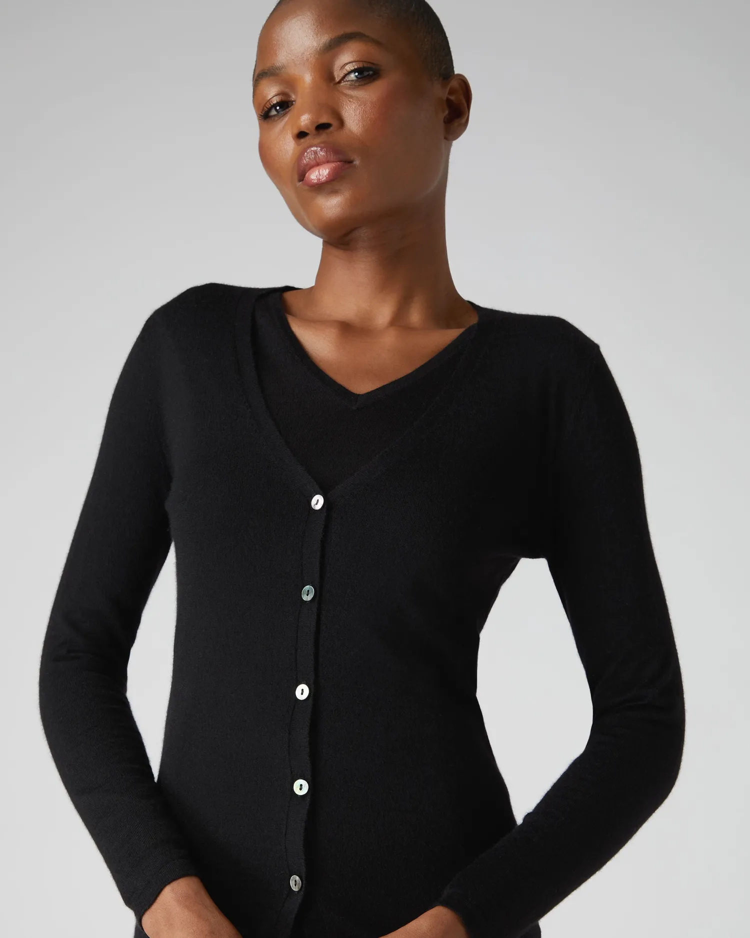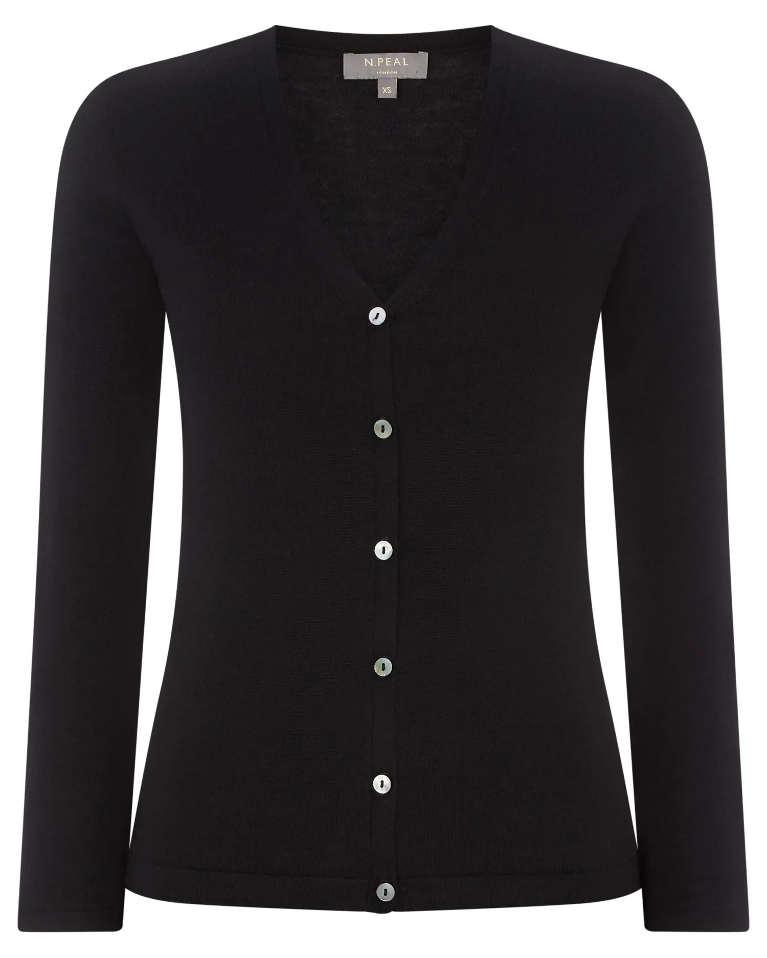 Our indulgent superfine cashmere V neck cardigan is worth a try. 100% Mongolian worsted Cashmere – Yarn spun finer to create a lightweight feel – Beautifully light and soft – Elegant v neck style – Six shell buttons to fasten – Great paired with N.Peal superfine shell top- Our superfine products have a naturally slimmer fit, if you’d like a looser fit (like our other products) or are between sizes, we suggest you size up- Model is wearing size Small- Care: Hand WashnFind our full range of Women’s Cashmere Cardigans here.