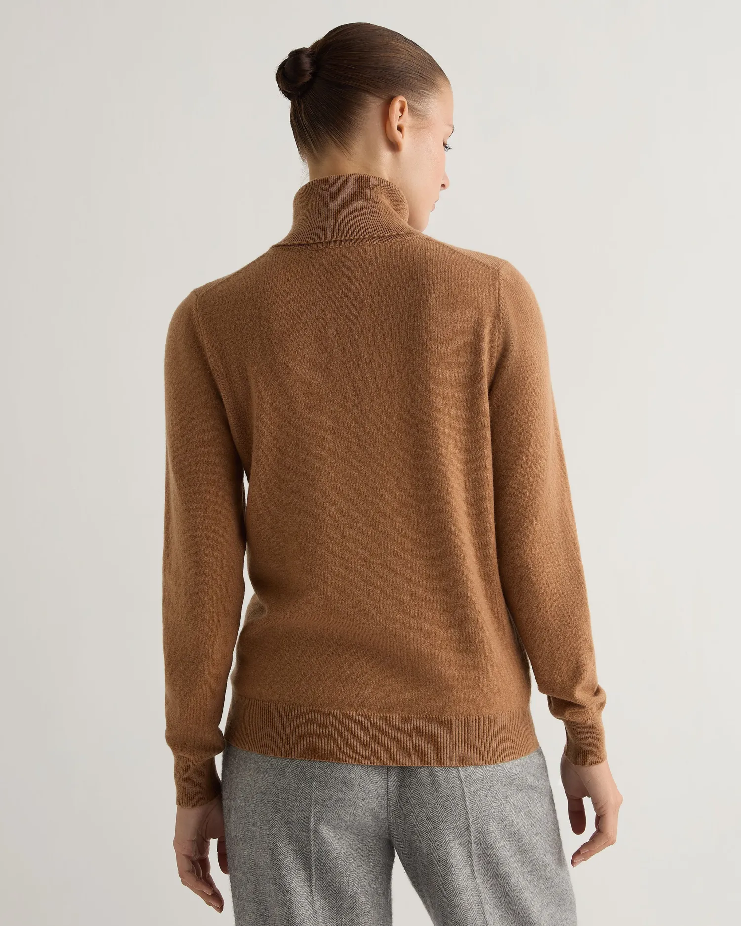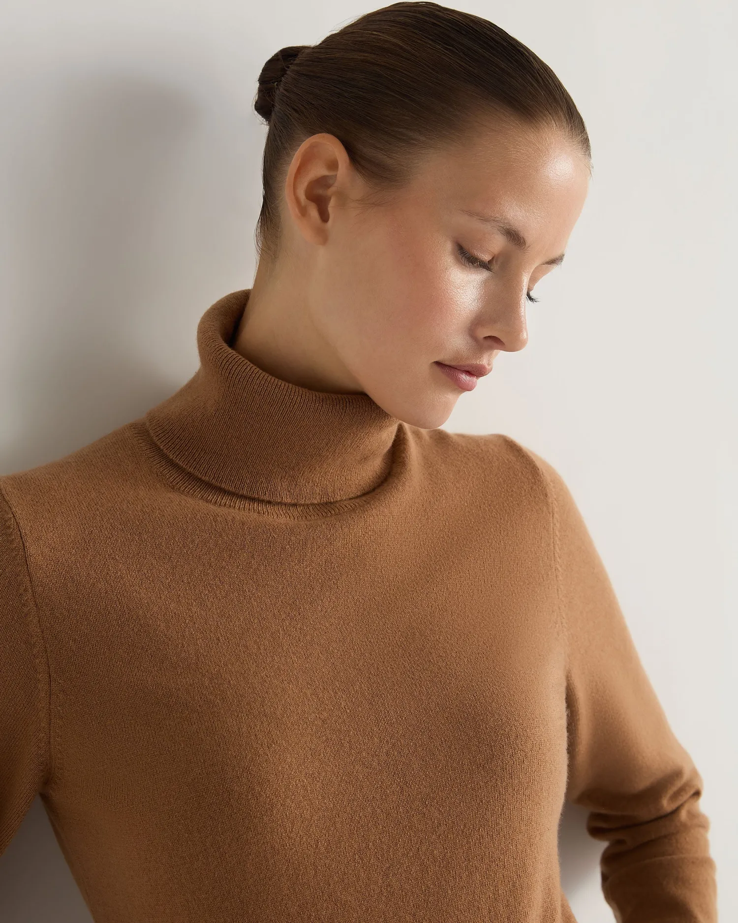 Feel the warmth and softness of our cashmere in this roll neck cashmere sweater. 100% Mongolian Organic Cashmere – True Cashmere hero – Long loved classic roll neck style – Super soft against the skin – Wide selection of colours- Model is wearing size Small- Care: Hand Wash Organic cashmere: organic dyes and detergents, free from fertilizer and pesticides, find out more herenFind our full range of Women’s Cashmere Roll Neck Jumpers here.n