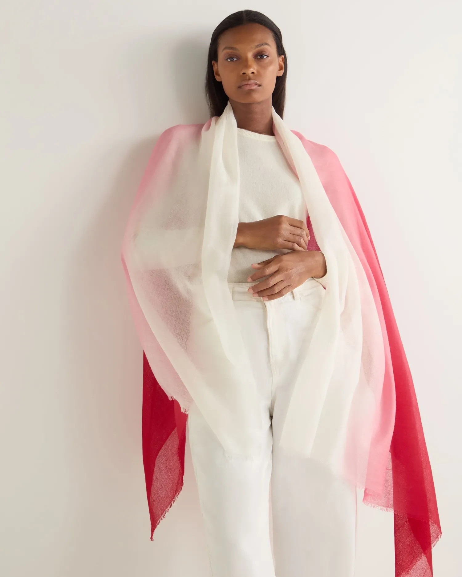 A tantalisingly attractive dip dye cashmere scarf from N.Peal. n Made from 100% Mongolian cashmere A wonderful addition to any wardrobe Exquisitely soft against the skin Created in truly beautiful shades to compliment any outfit Measures 200x100cm Truly beautiful artisan piece Care: Dry Clean Only