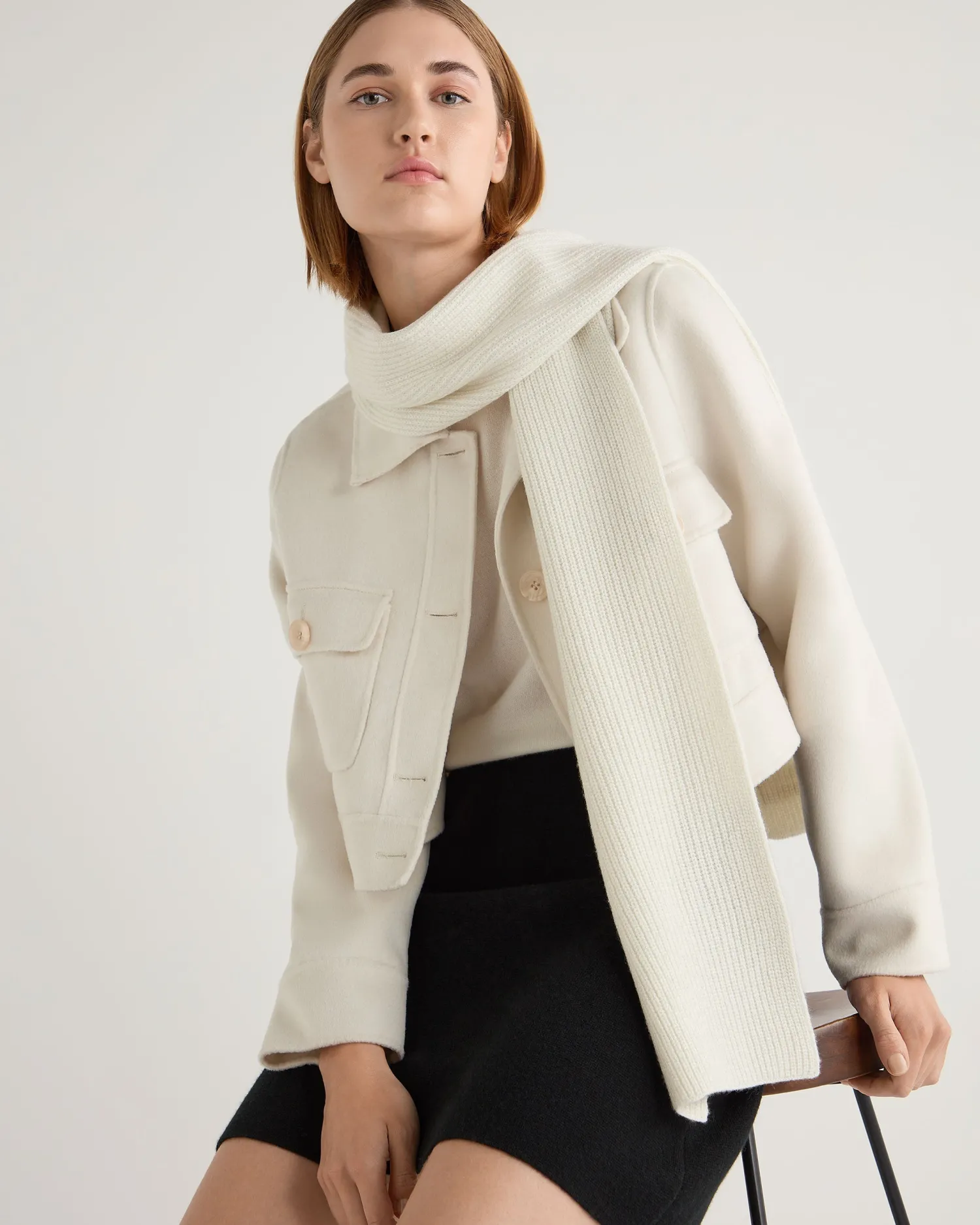This amazing cashmere ribbed scarf looks the part with added Lurex and is super warm and cosy.n Made from 92% Mongolian cashmere and 8% Lurex Knitted in an attractive ribbed pattern Measures 185x20cm Perfect addition to the weekend wardrobe Team with our ribbed gloves and hats Would make a wonderful gift 3ply Care: Hand Wash