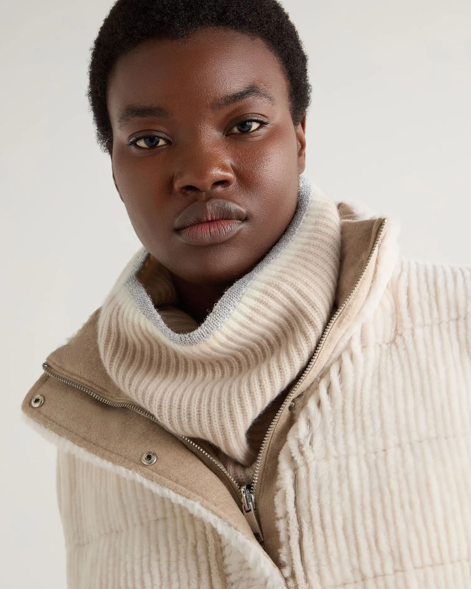 Add a touch of shimmer to your cold weather style with our new sparkle trim ribbed snood. Made from 92% organic Mongolian cashmere and 8% Lurex – Featuring a sophisticated ribbed design, enhanced with a new ivory and silver lurex trim – A beautiful elegant sparkle trim that elevates you look – This snood will keep you warm and stylish – Luxurious, soft and comfortable – Perfect for cold weather and outdoor pursuits – 3ply – Care: Hand Wash
