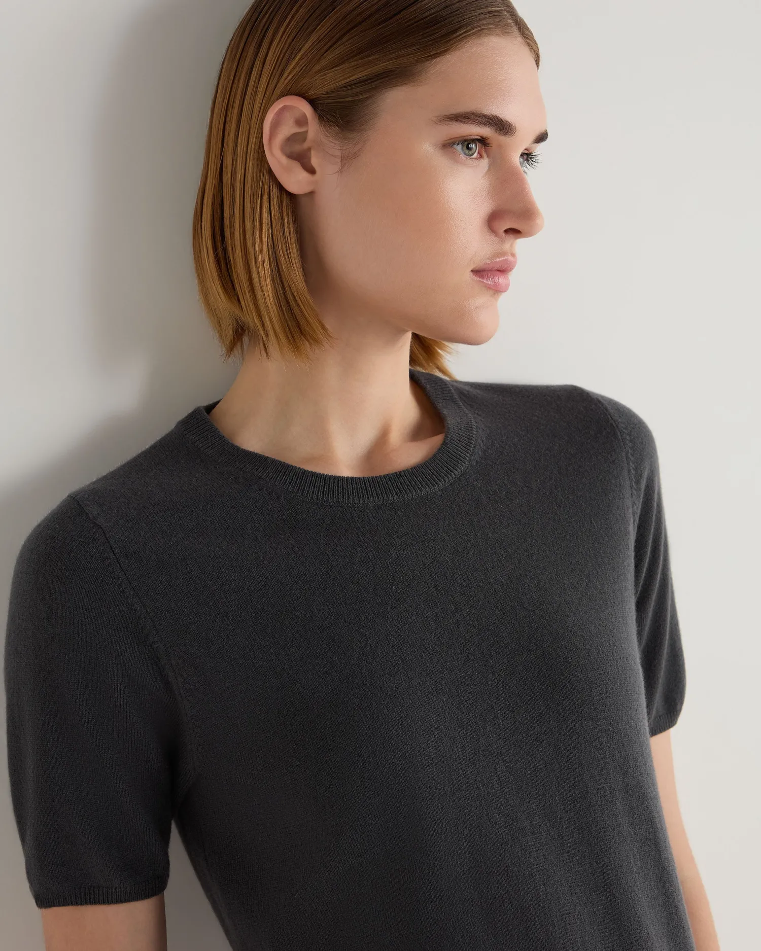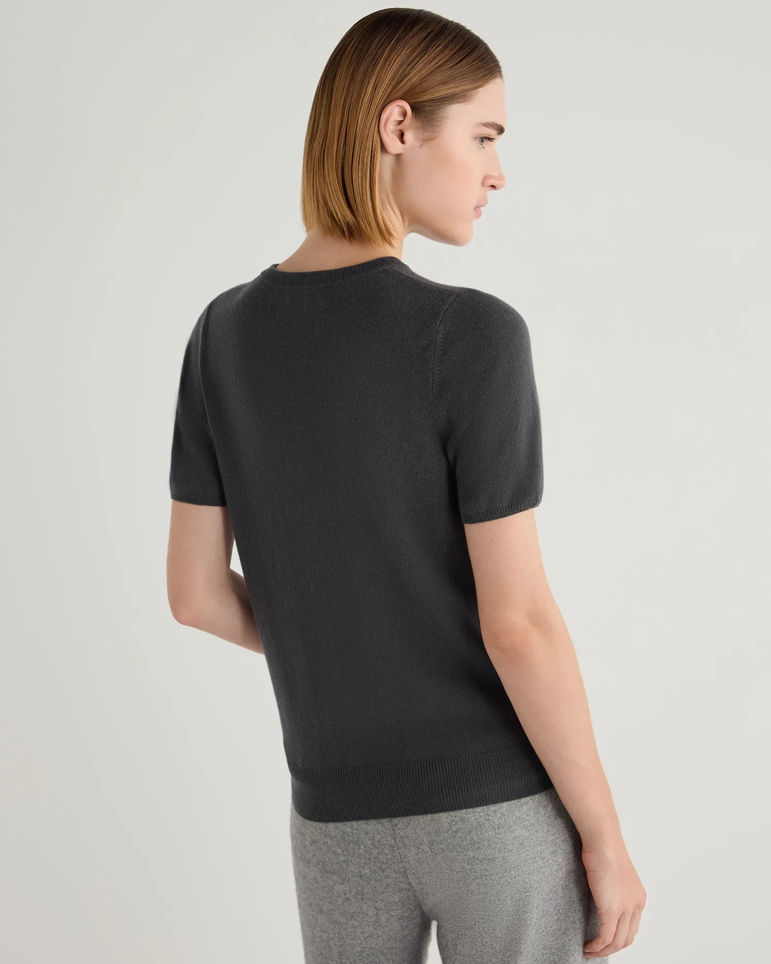 A fabulous piece to dress up or down – the cashmere round neck T-shirt. 100% Mongolian organic cashmere – Flattering round neck style – Short sleeves – Perfect layering piece – Neat matching trim finish – 1ply – Model is wearing size Small – Care: Hand Wash Organic cashmere: organic dyes and detergents, free from fertilizer and pesticides, find out more here