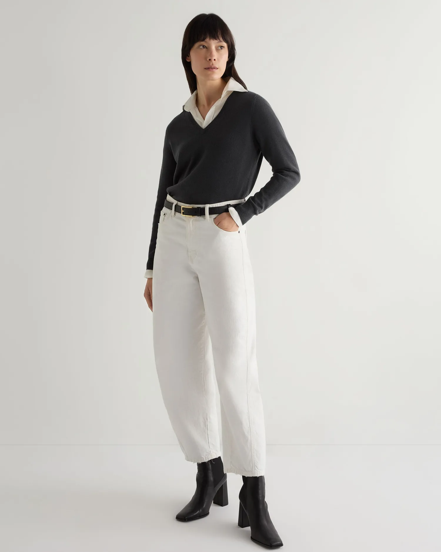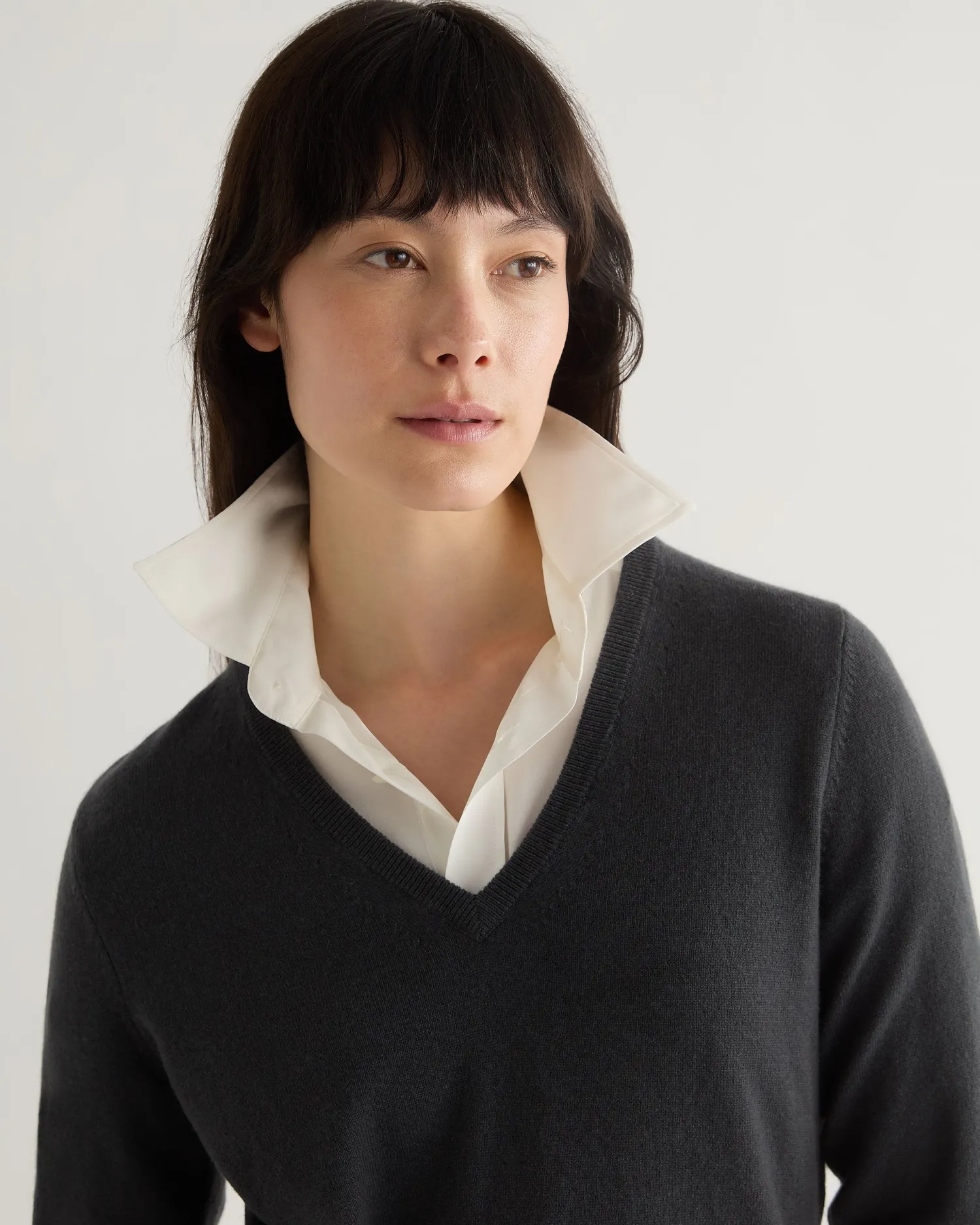 The perfect cashmere V neck sweater, in beautiful colours. Made from 100% Mongolian organic cashmere – Elegant v neck shape – Matching ribbed cuffs and hem – Superbly soft to touch – Cut beautifully to flatter the figure – Great selection of colour options – 1ply – Model is wearing size Small – Care: Hand Wash Organic cashmere: organic dyes and detergents, free from fertilizer and pesticides, find out more here