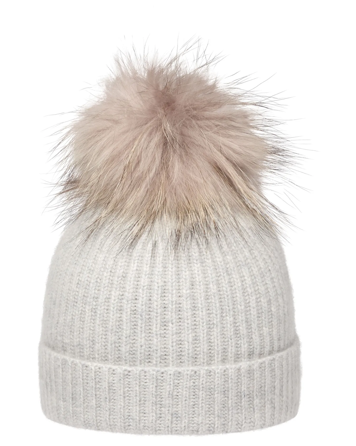 Our wonderful cashmere ribbed hat with an enchanting detachable pom. Made from 100% organic Mongolian cashmere – Ribbed knit structure for warmth and texture – Raccoon pom attached on a press stud to swap pom colours and for ease of washing – Super stylish and great looking – Perfect gift for all ages – 2ply – Care: Dry Clean Only Organic cashmere: organic dyes and detergents, free from fertilizer and pesticides, find out more here