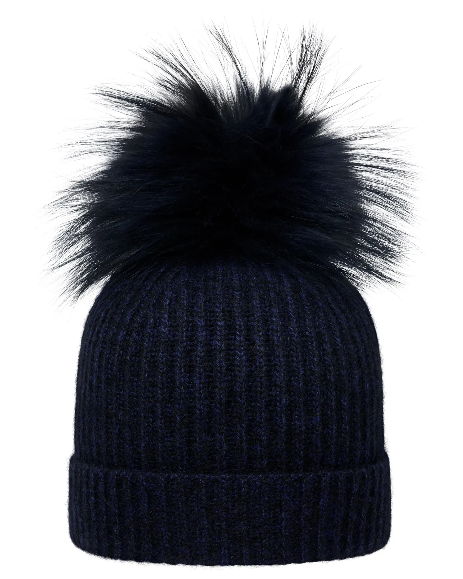 Our wonderful cashmere ribbed hat with an enchanting detachable pom. n Made from 100% organic Mongolian cashmere Ribbed knit structure for warmth and texture Raccoon pom attached on a press stud to swap pom colours and for ease of washing Super stylish and great looking Perfect gift for all ages 2ply Care: Dry Clean Only