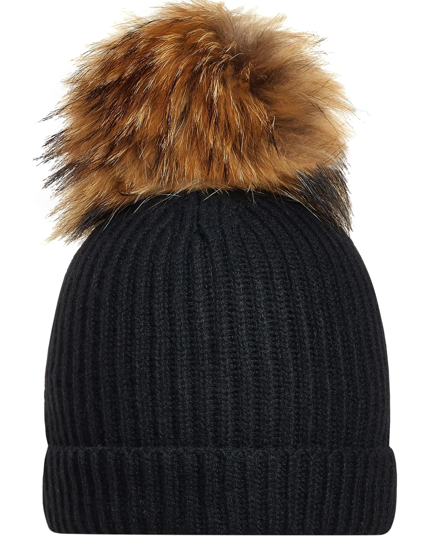 Our wonderful cashmere ribbed hat with an enchanting detachable pom. Made from 100% Mongolian Organic Cashmere – Ribbed knit structure for warmth and texture – Raccoon pom attached on a press stud to swap pom colours and for ease of washing – Super stylish and great looking – Perfect gift for all ages- Care: Hand Wash Organic cashmere: organic dyes and detergents, free from fertilizer and pesticides, find out more here