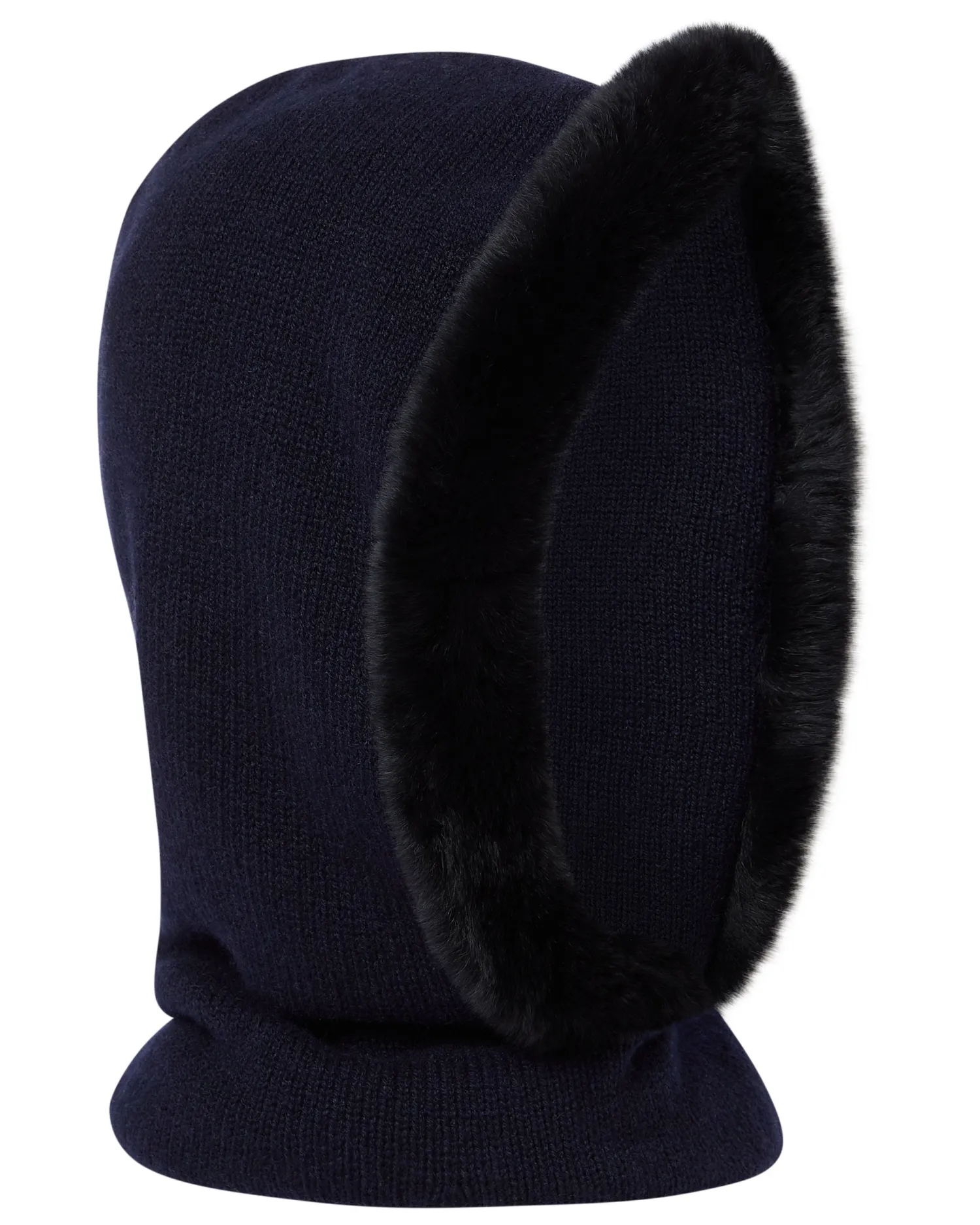 A wonderful and super soft ski hood, suitable for all outdoor occasions. Made from 100% Mongolian Cashmere with navy blu…