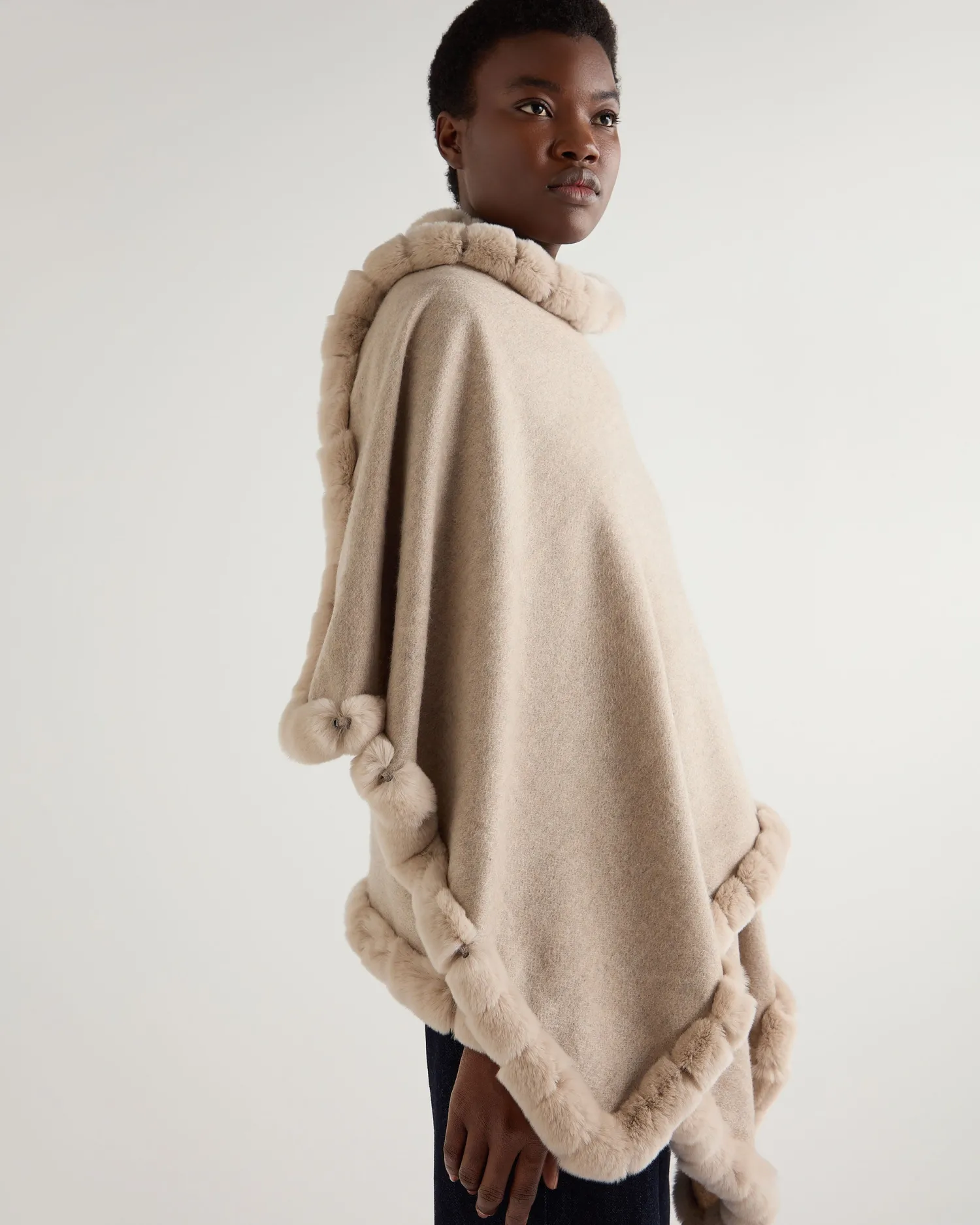 Wrap yourself in the sheer luxury of a trim woven shawl. Made from 100% Mongolian cashmere with Rex fur trim – Generously sized at 200x75cm – Sand brown fur trim around all edges – Can be worn casually with jeans or dressed up – Would make a fabulous gift – Care: Dry Clean Only