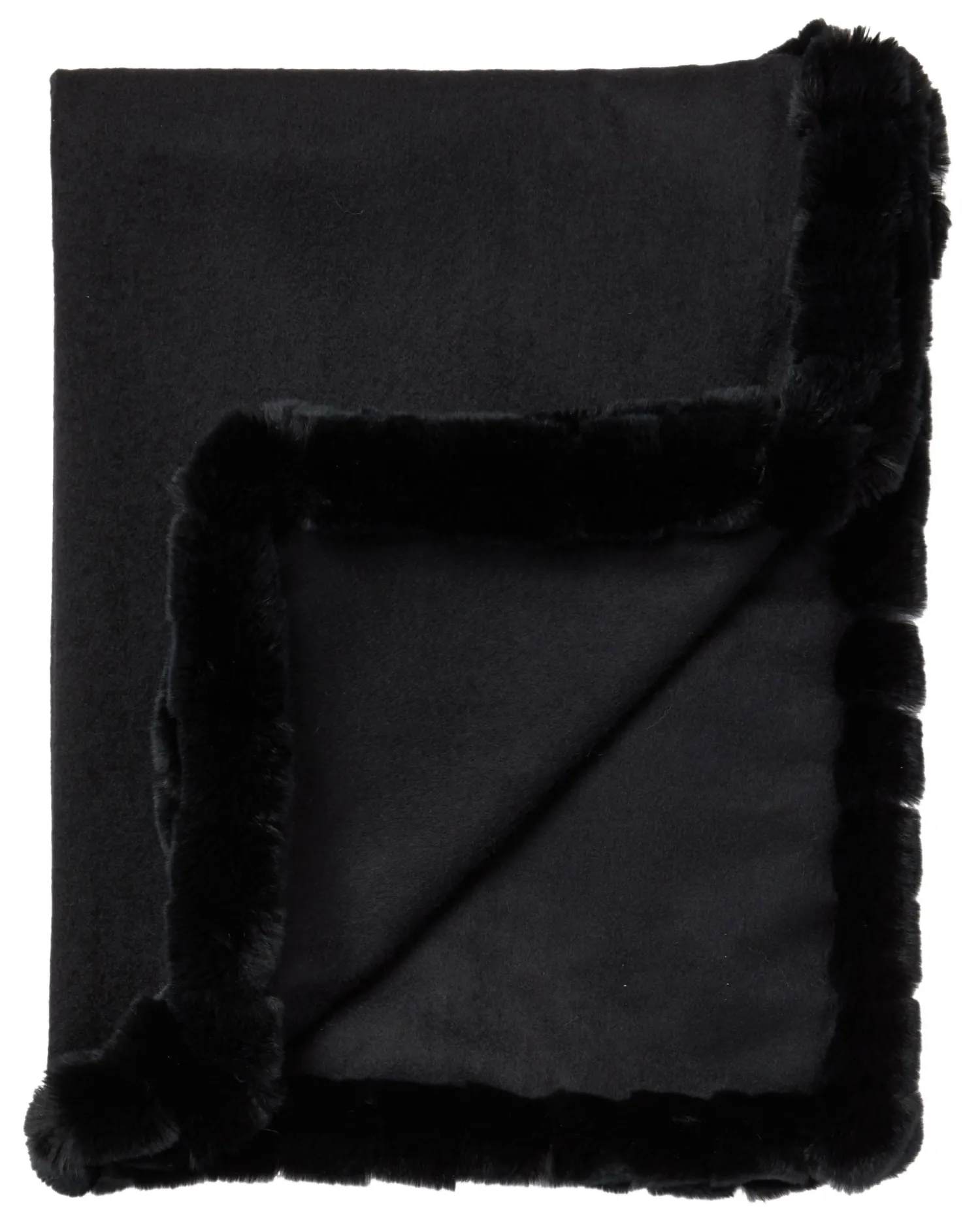 Wrap yourself in the sheer luxury of a fur trim woven shawl. Made from 100% Mongolian Cashmere with Rex Fur trim – Generously sized at 200x75cm – Black fur trim around all edges – Can be worn casually with jeans or dressed up – Would make a fabulous gift- Care: Dry Clean OnlynFind our range of Cashmere Pashminas, Wraps and Shawls here.