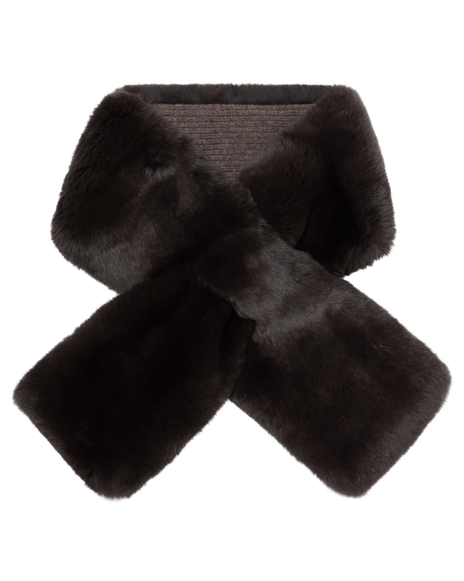 A firm favourite amongst the N.Peal audience – the Rex fur neck warmer. Made from supersoft dark brown Rex fur with a 100% Mongolian cashmere reverse in a ribbed stitch – Welcome addition to any wardrobe – Available in a lovely colour selection – Hidden slit to wear the neck warmer in a crossover style – Cosy, comfortable and warm – 1ply – Care: Dry Clean Only
