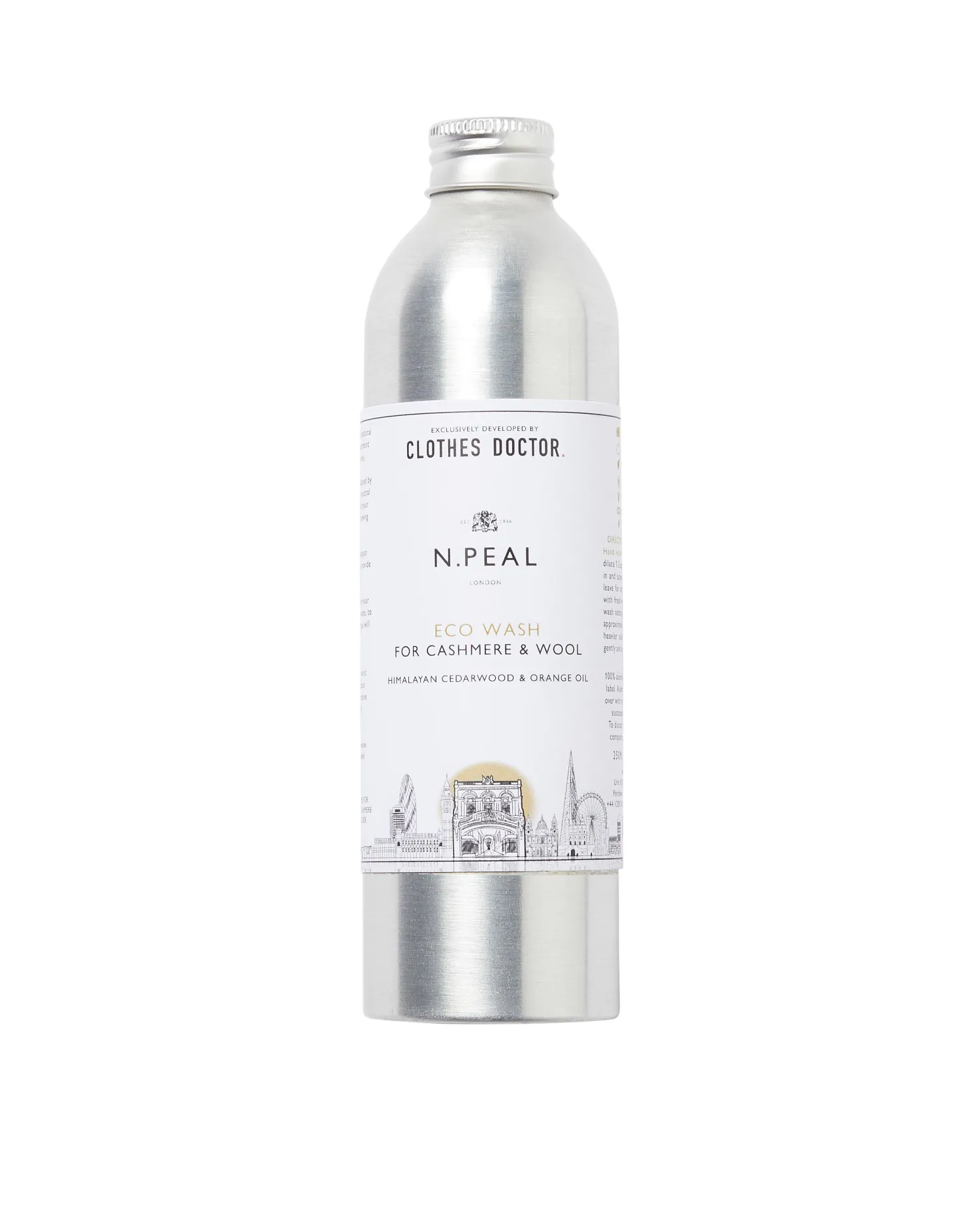 Cashmere and Wool are delicate natural fabrics that deserve special treatment(as we all do from time to time).nOur Eco Wash, exclusively developed by Clothes Doctor, is a gentle pH neutral formula that extends the life of your knitwear through cleaning, renewing and softening.nIt is lightly scented with Himalayan Cedarwood and Orange oil, to provide natural moth defence.nOur mission is to help you love your clothes for longer and reduce waste, to protect our planet. We hope you will join the revolution.nDIRECTIONS FOR USE: (1 cap = 6ml) Hand wash: Fill a basin with cool water, dilute 1-2 capfuls, then place your garments in and submerge. Gently agitate the water, leave for around 30 min. Rinse thoroughly with fresh water. Machine: Use delicates wash setting and pour into dispenser. Use approximately 2-3 capfuls, increase for heavier soiling. Drying: Press out water gently and dry flat on a towel.