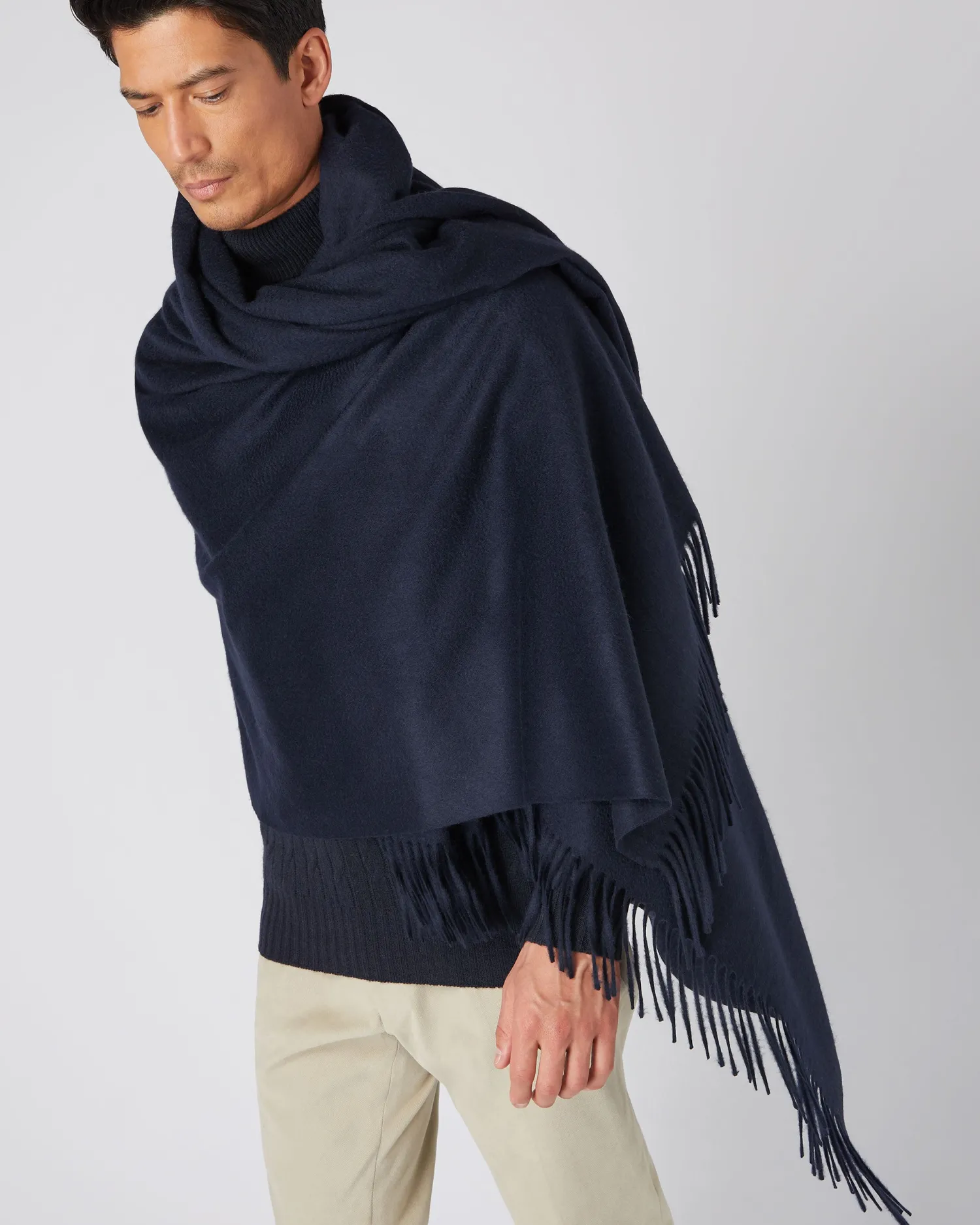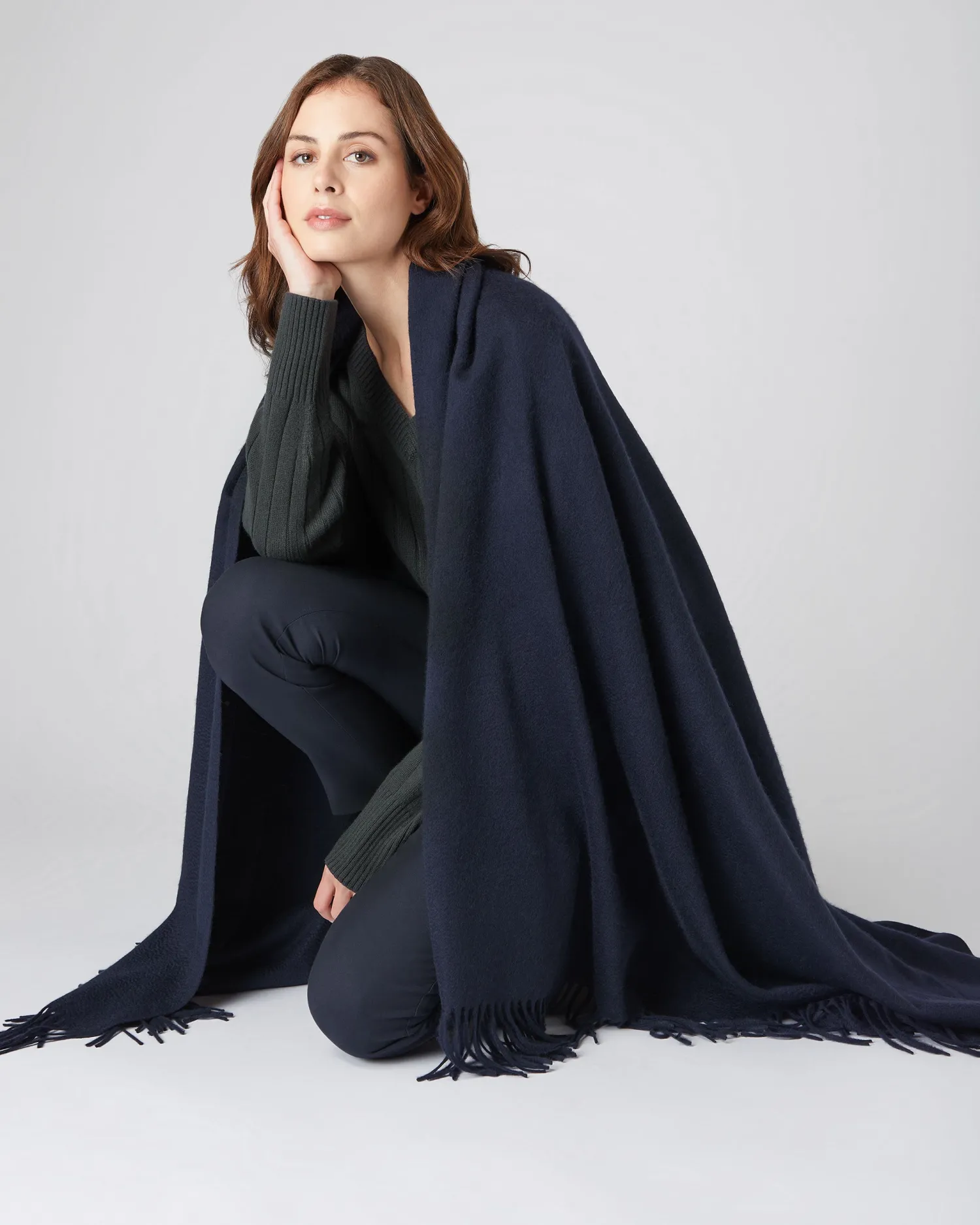 A blanket shape that will sit beautifully draped across a bed or sofa.100% Mongolian Cashmere – Great to pull around yourself on colder days – Would be equally fabulous worn as an oversized shawl – Woven rather than knitted for a smooth and even texture – Supersoft to the touch and generous in size – Measures 220cm (including tassels) long and 140cm wide- Care: Dry Clean OnlynFind our range of Homeware Accessories here.