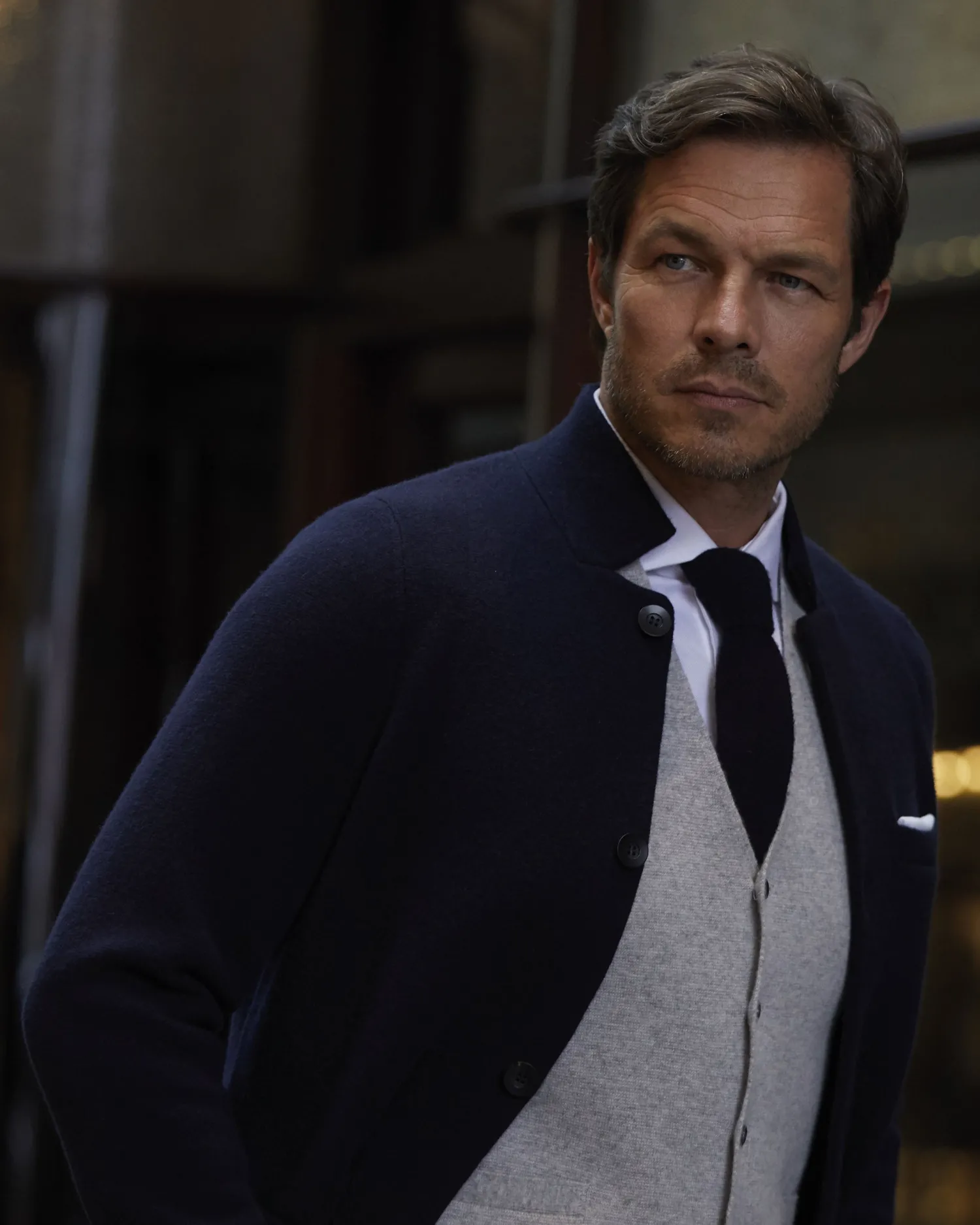 An incredibly luxurious piece from N.Peal, inspired by the jacket worn by Bond in GOLDFINGER (1964).- Made from 100% Mongolian Cashmere- The ultimate in cashmere suiting- Milano stitch for strength and texture- Four elegant buttons- Two patch pockets- Subtle breast pocket- Side vents- Cuff buttons- Revere collar- Model is wearing size Medium- Care: Hand WashnThis knitted jacket will immediately upgrade any outfit, inspired by the jacket worn by Bond when he meets with M to discuss his next assignment and the suffocation of Jill Masterson found dead after being painted gold, in GOLDFINGER (1964).007 and related James Bond Indicia © 1962-2024 Danjaq and MGM. 007 and related James Bond Trademarks are trademarks of Danjaq. All Rights Reserved.