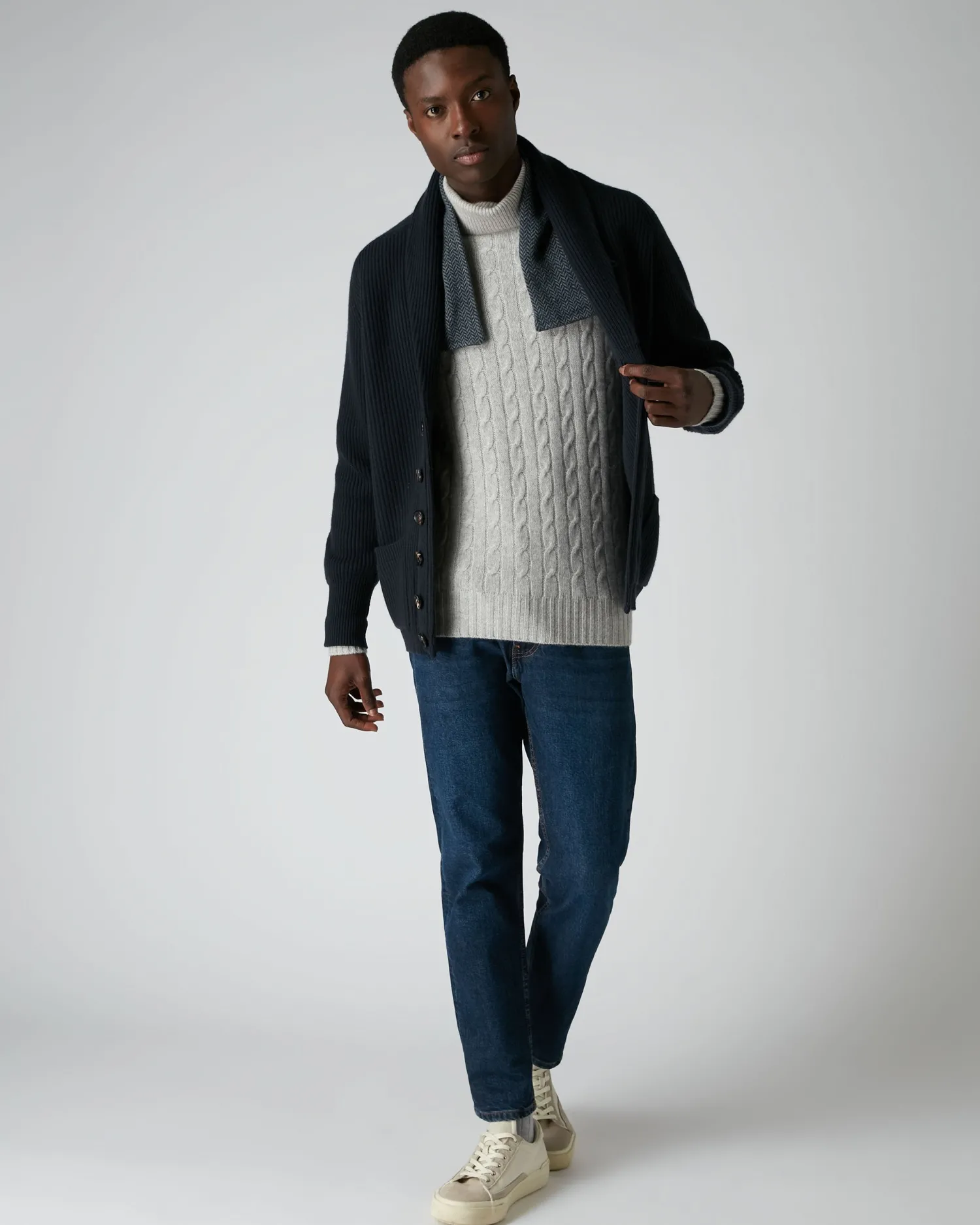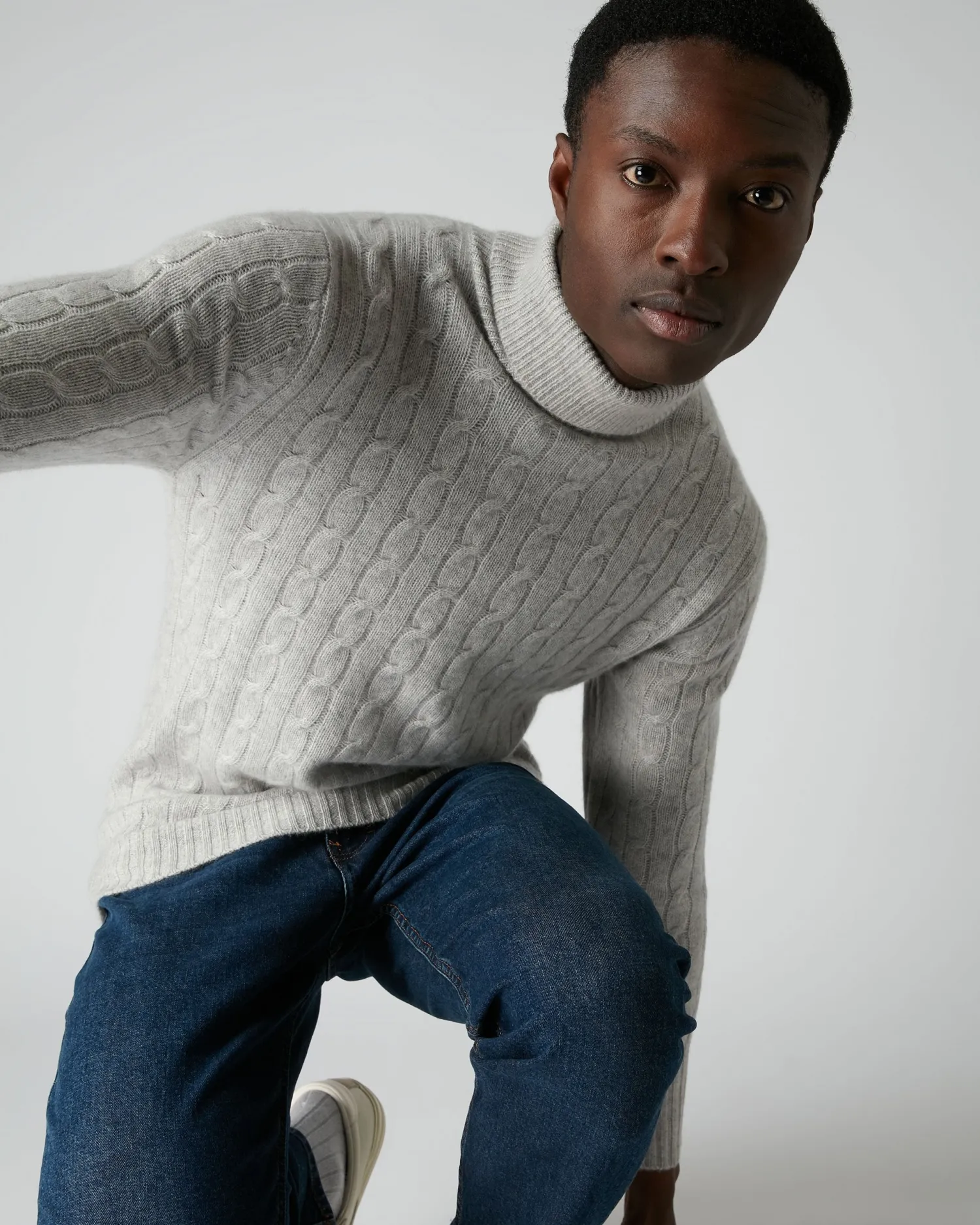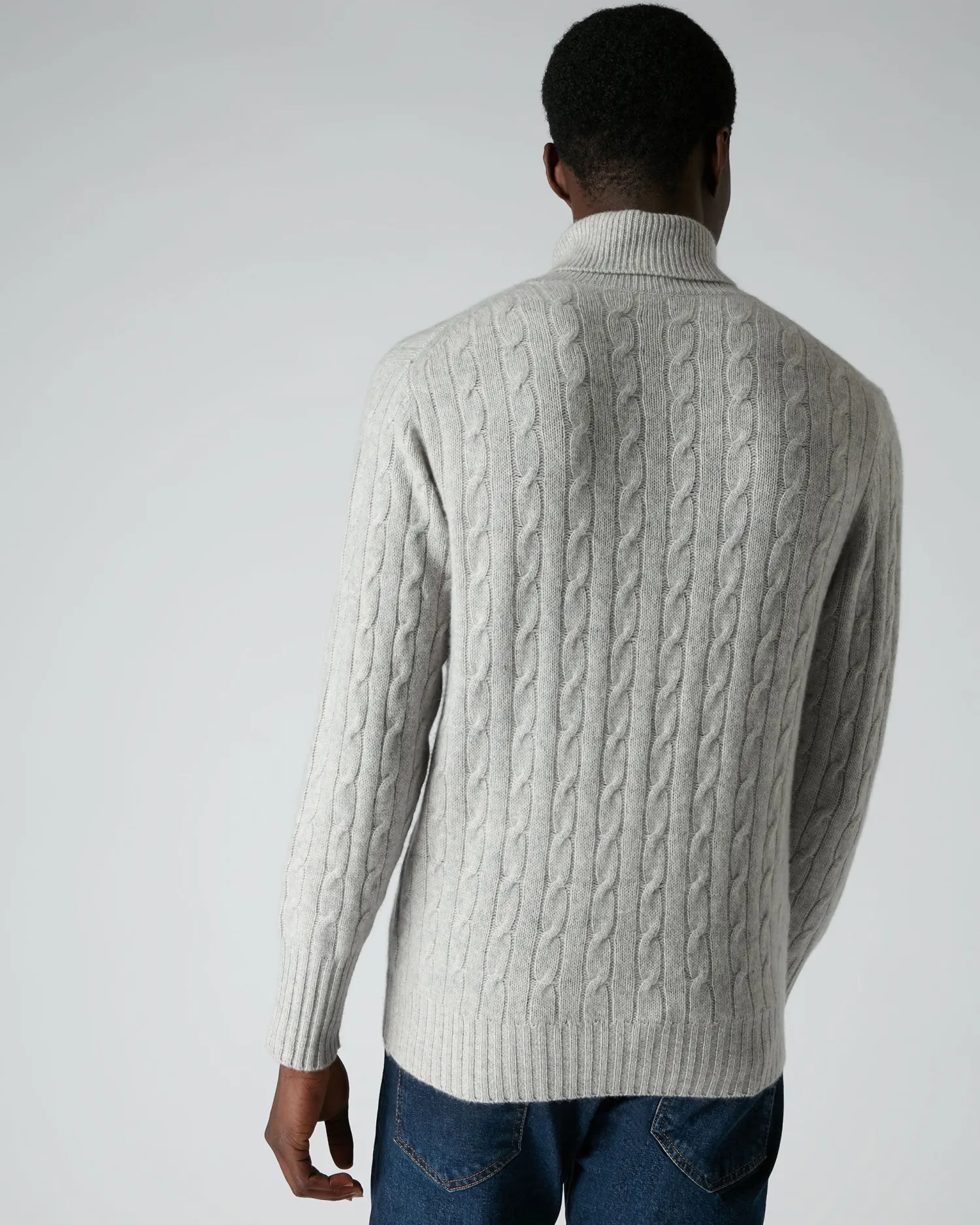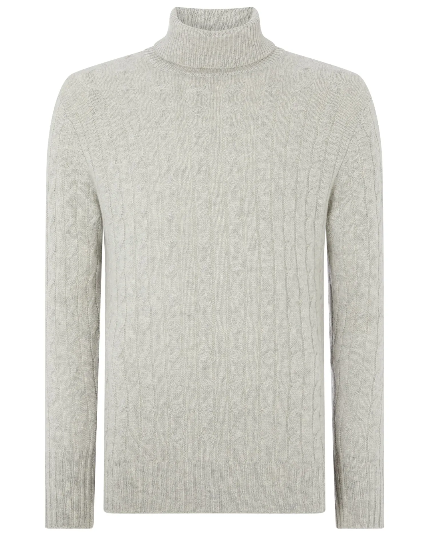This fabulous 100% Mongolian cashmere cable roll neck is super stylish and truly luxurious in fumo grey, as worn by Bond in SPECTRE (2015).- 100% Mongolian Cashmere- Cable knit pattern- Ribbed roll neck- Matching rib on hem and cuffs- Model is wearing size Medium- Care: Hand WashWorn by Bond when he visits the remote Austrian cabin where he believes his old nemesis Mr. White to reside, hoping to unravel the clue which untangles the web of Spectre, in the film of the same name. Designed specifically for 007 in SPECTRE (2015).n007, James Bond and related James Bond Indicia © 1962-2024 Danjaq and MGM. 007, James Bond and related James Bond Trademarks, TM Danjaq. All Rights Reserved. us.007Store.com