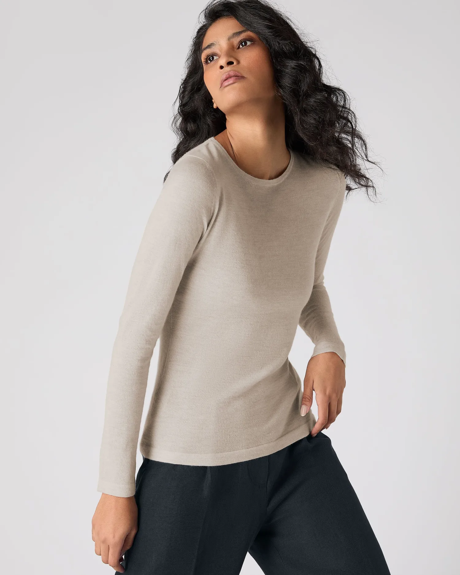 Our superfine is very popular, here we see the long sleeve, round neck cashmere top. 100% Mongolian worsted Cashmere – Yarn spun finer to create a lightweight feel – Beautifully light and soft – Gentle round neck style – Range of colours available – Our superfine products have a naturally slimmer fit, if you’d like a looser fit (like our other products) or are between sizes, we suggest you size up – Model is wearing size Small – Care: Hand Wash