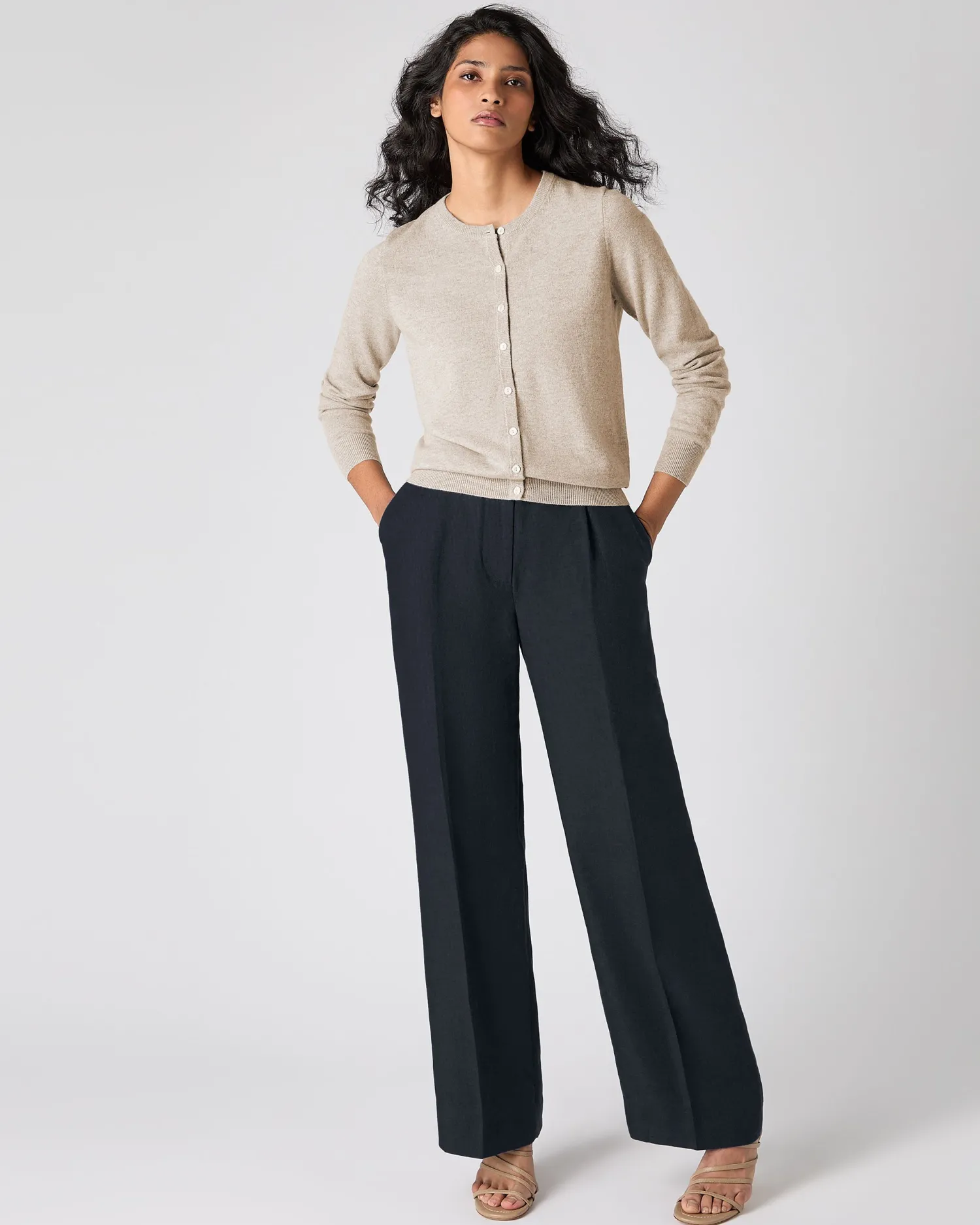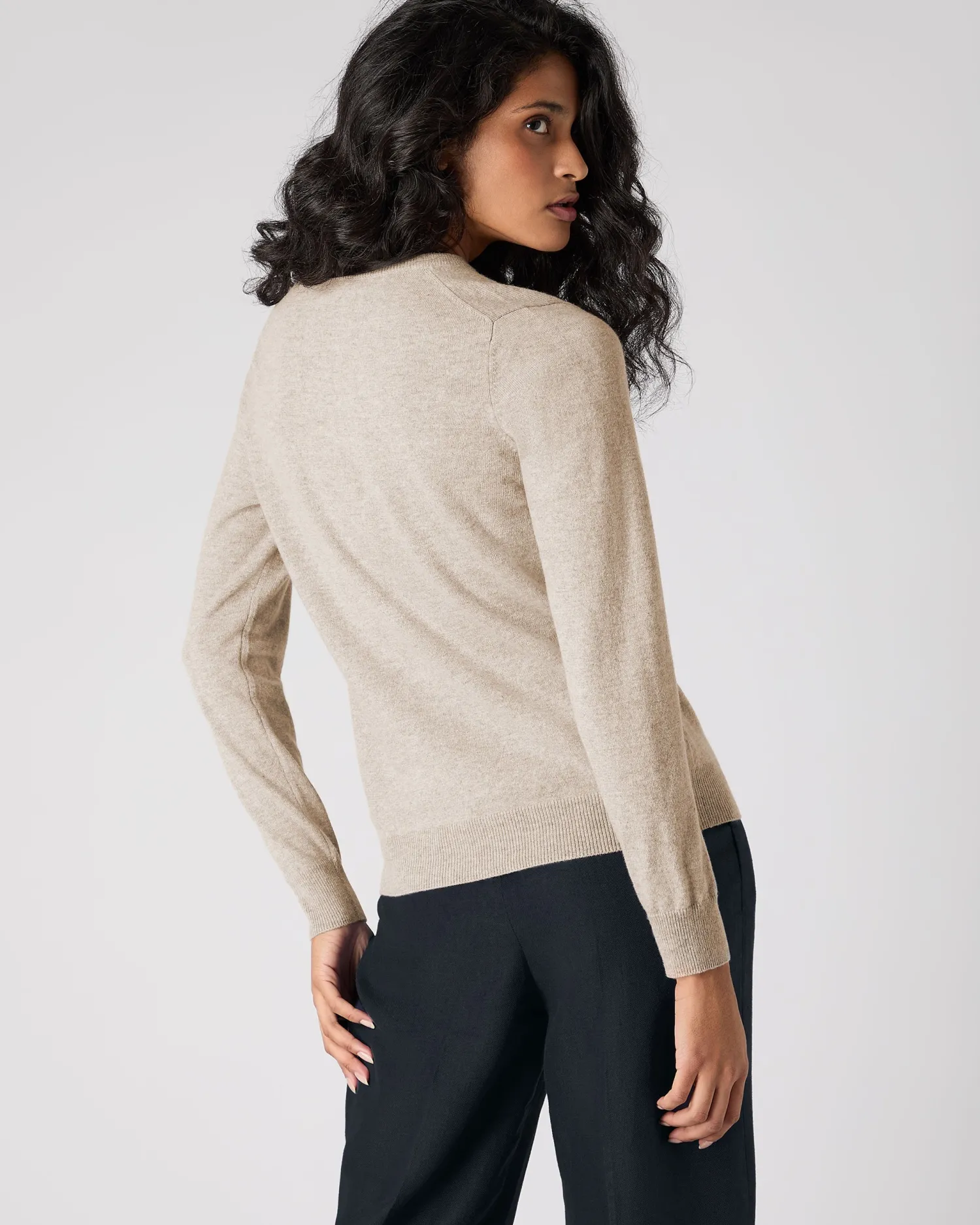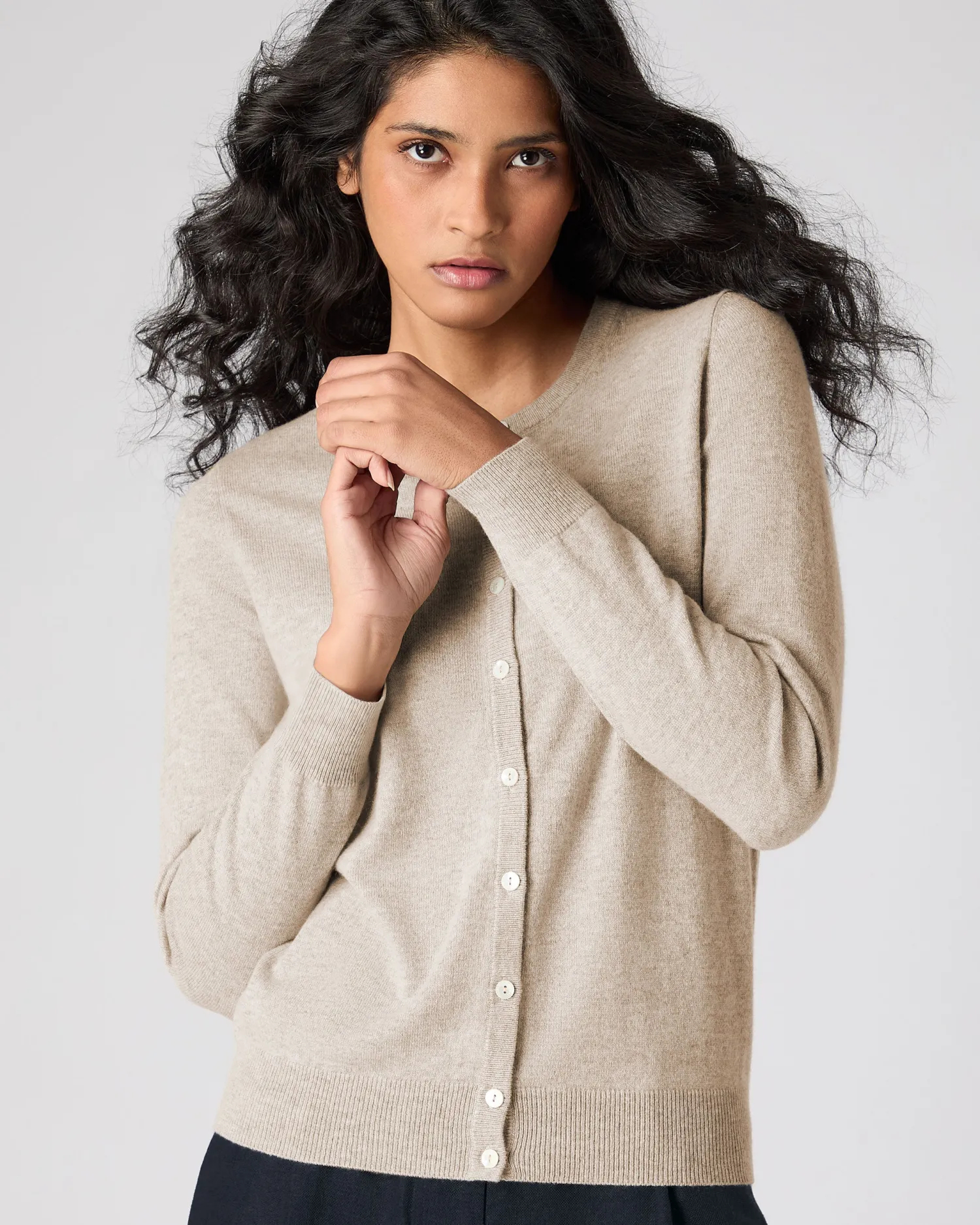 Welcoming another N.Peal favourite – the cashmere round neck cardigan. 100% Mongolian Organic Cashmere – Smart round neck design – Beautiful shell buttons – Supersoft against the skin – Enchanting array of colours – Model is wearing size Small – Care: Hand Wash Organic cashmere: organic dyes and detergents, free from fertilizer and pesticides, find out more here