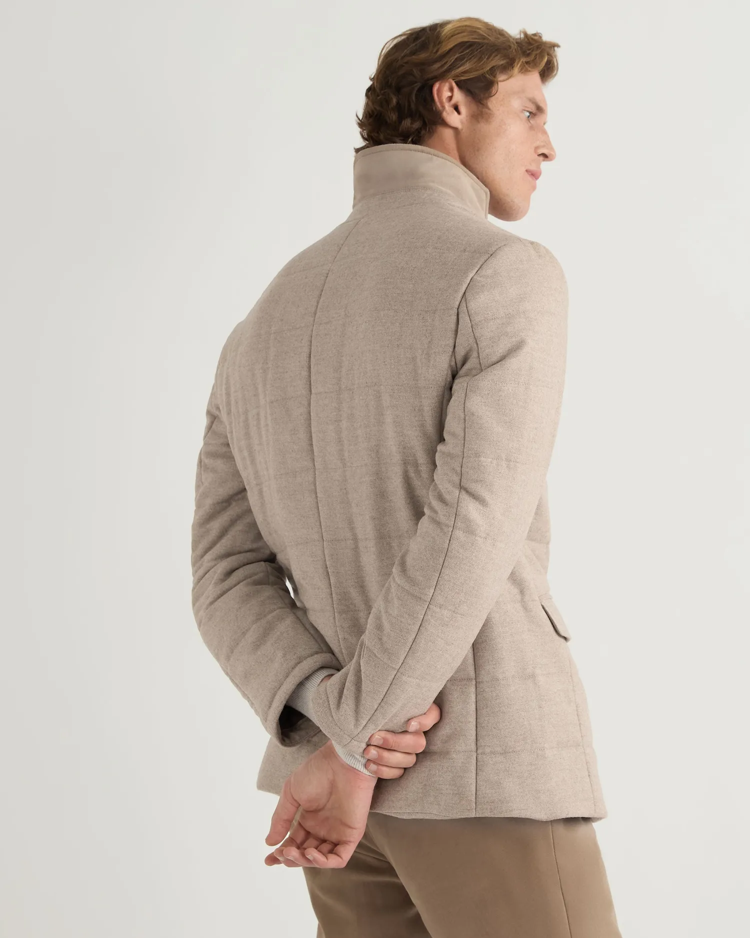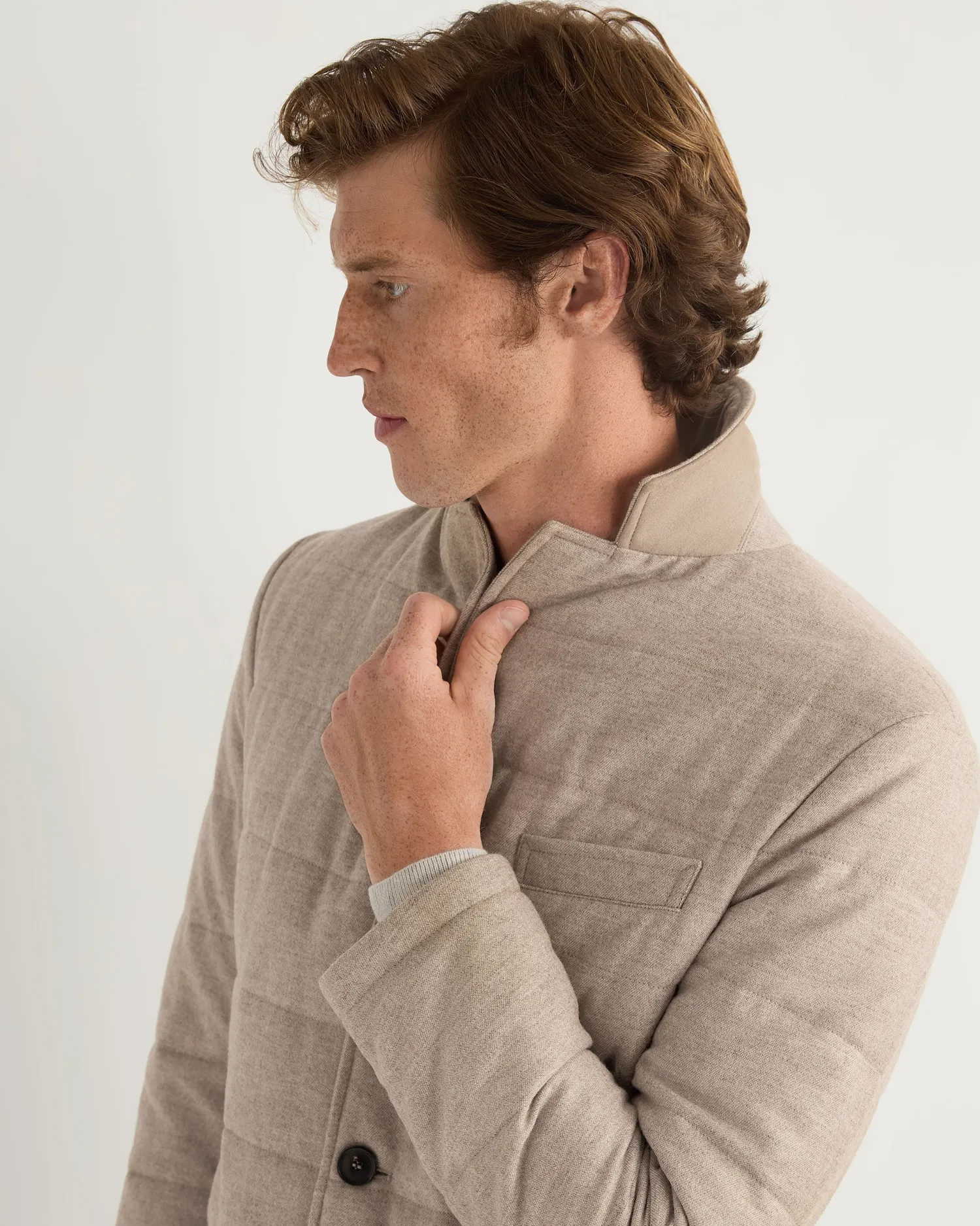 Our Cervinia padded jacket is the ultimate layering jacket for colder weather. The excellence of the natural fibres of wool and cashmere ensure warmth without comprising on the luxurious hand feel, bridging the gap between sophisticated and casual. Made from 98% wool and 2% Mongolian cashmere – Smart buttoned jacket featuring a jacket style collar – Two handy side pockets and one welt pocket on the chest – Model is wearing size Medium – Care: Dry Clean Only