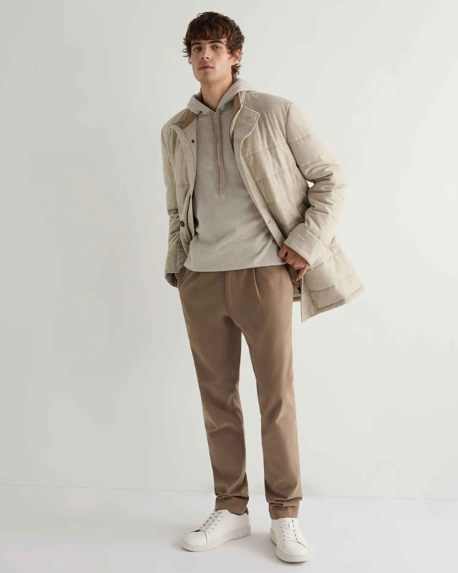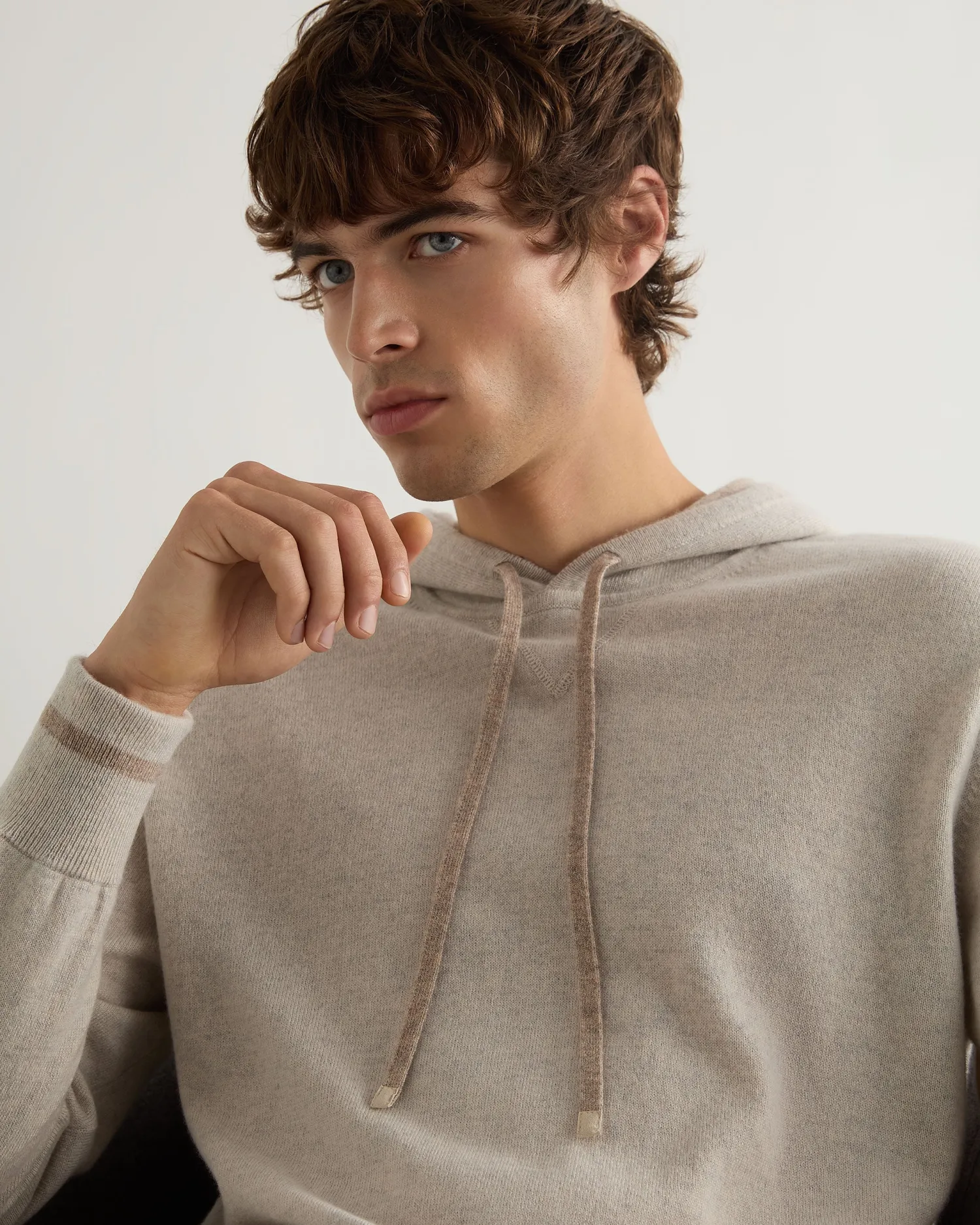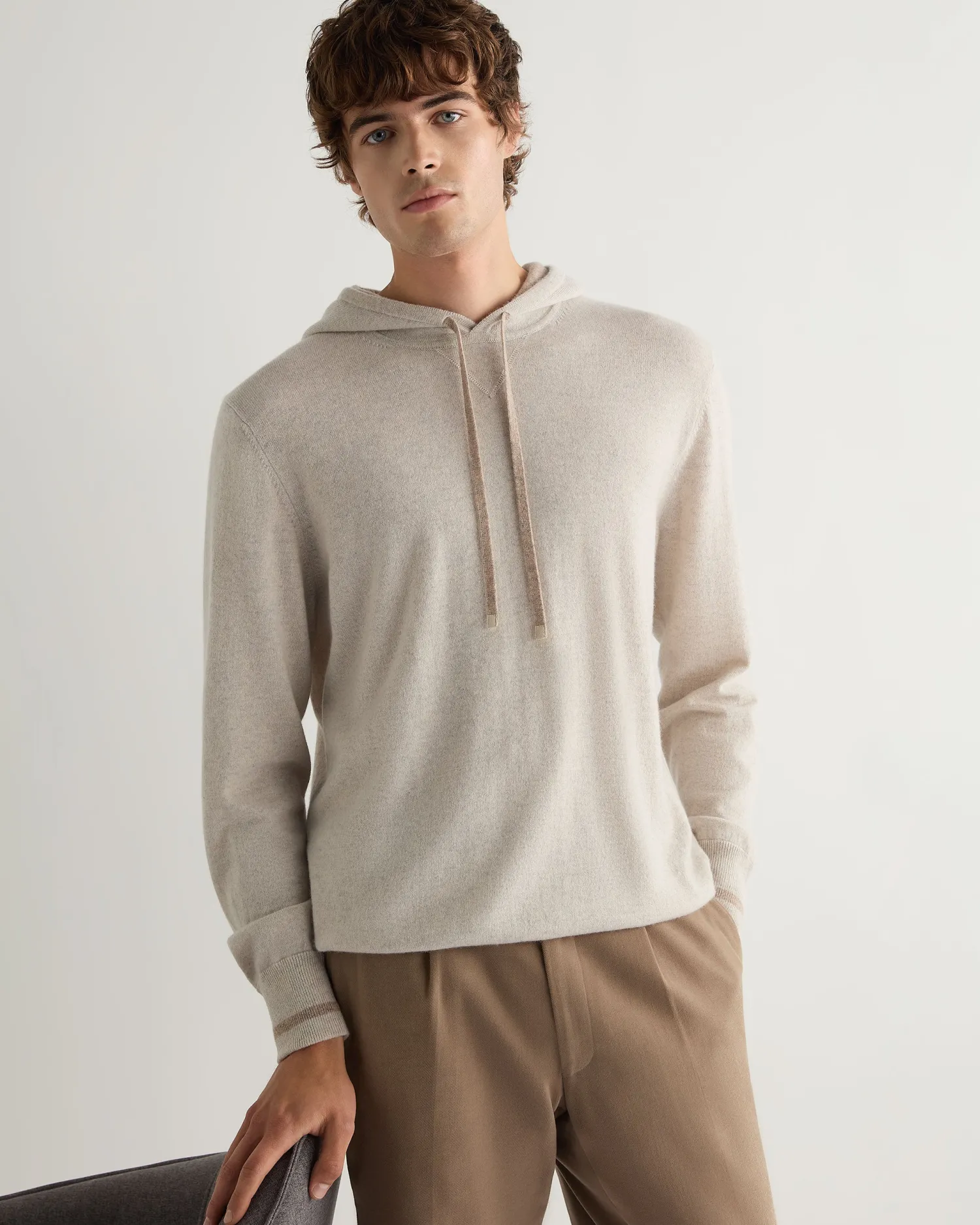 This fabulous new sweatshirt style hoodie has arrived just in time for winter, perfect for lounging at home in or layering up for the cold. Made from 100% Mongolian organic cashmere – Subtle v design on the chest – Delicate oatmeal brown trim on the hem, cuffs and drawstring – Soft and comfortable on the skin – 1ply – Model is wearing size Medium – Care: Dry Clean Only Organic cashmere: organic dyes and detergents, free from fertilizer and pesticides, find out more here