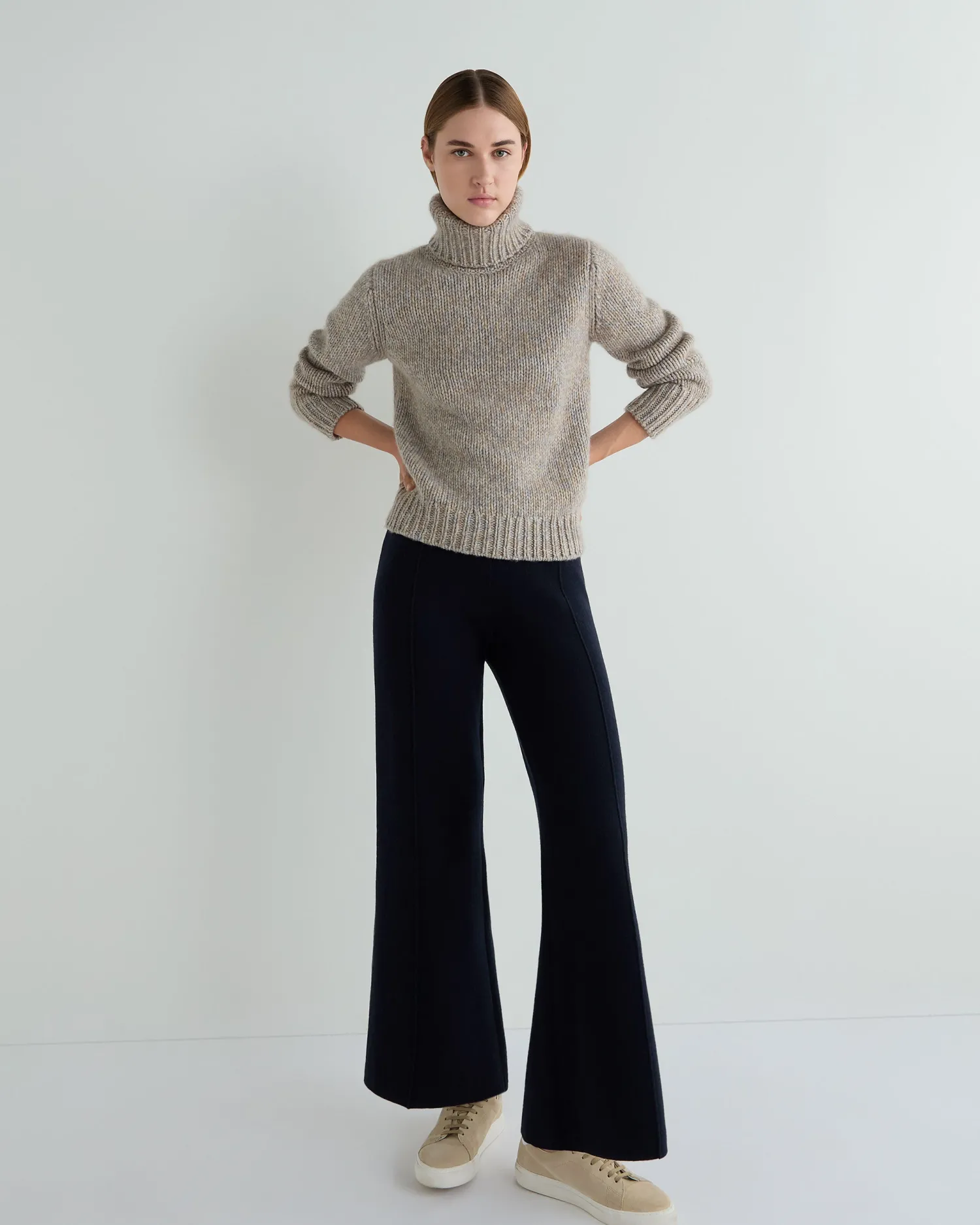 Versatile and refined, our new double face trousers transition effortlessly from casual to chic.n Made from 90% wool and 10% organic Mongolian cashmere Featuring a unique double faced design Luxuriously soft and comfortable A sleek, stream lined fit that drapes beautifully Easy to style with a blouse or maybe more casually with a sweater Impeccably soft against the skin and easy to wear Model is wearing size Small Care: Dry Clean Only