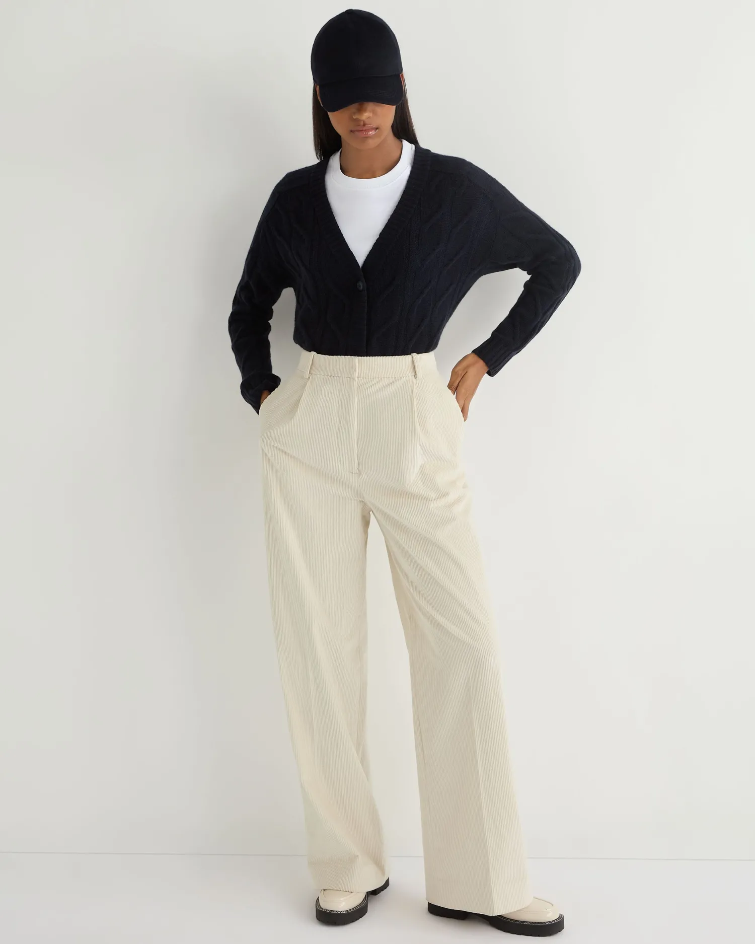 Elevate your wardrobe with N.Peals new V- neck cable cardigan, a quintessential blend of luxury and comfort. Made from 100% Mongolian organic cashmere – Popular cable design – Elegant V-Neck style – 3 smart buttons – Thick rib design on cuff, hem and down the front of the body – Luxurious and comfortable – Fabulous worn casually with jeans or upgraded with a crisp shirt and tailored trousers – 2ply – Model is wearing size Small – Care: Dry Clean Only Organic cashmere: organic dyes and detergents, free from fertilizer and pesticides, find out more here