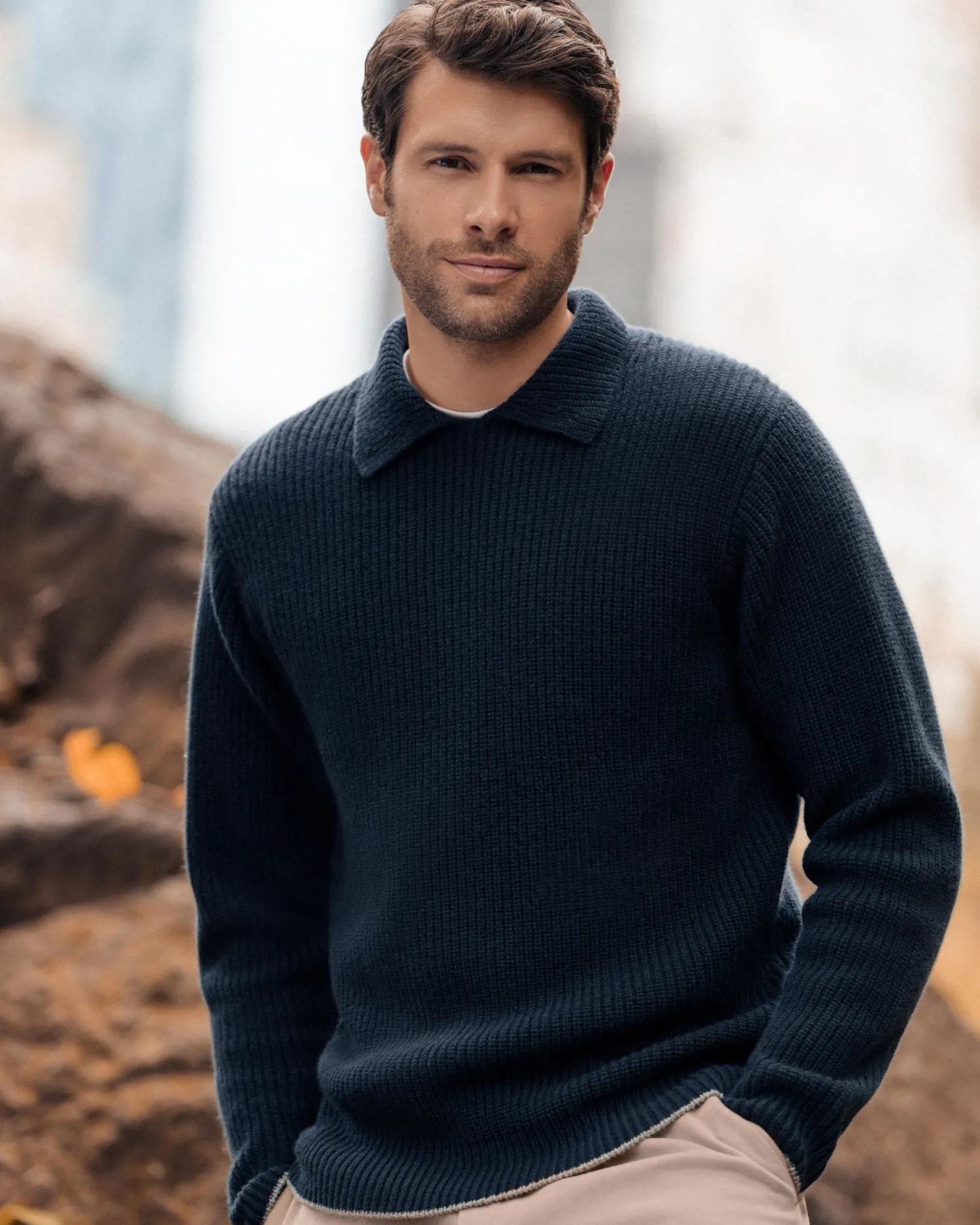Introducing the Clapham rib polo sweater, a timeless piece that merges classic style with contemporary comfort. Made from 100% organic Mongolian cashmere of the finest quality – Featuring a subtle ribbed texture – A versatile polo collar, providing a casual yet polished look – Perfect for layering or wearing on its own – Luxuriously soft and comfortable – Ideal for either casual or smarter settings – Flannel grey contrast around the hem – 3ply – Model is wearing size Medium – Care: Hand Wash Organic cashmere: organic dyes and detergents, free from fertilizer and pesticides, find out more here