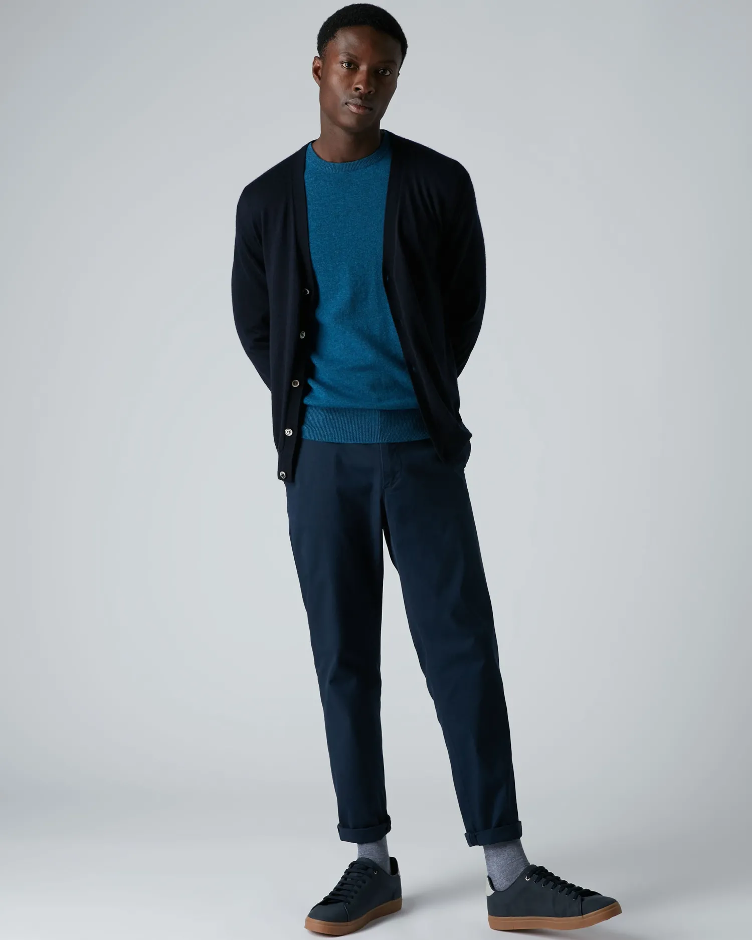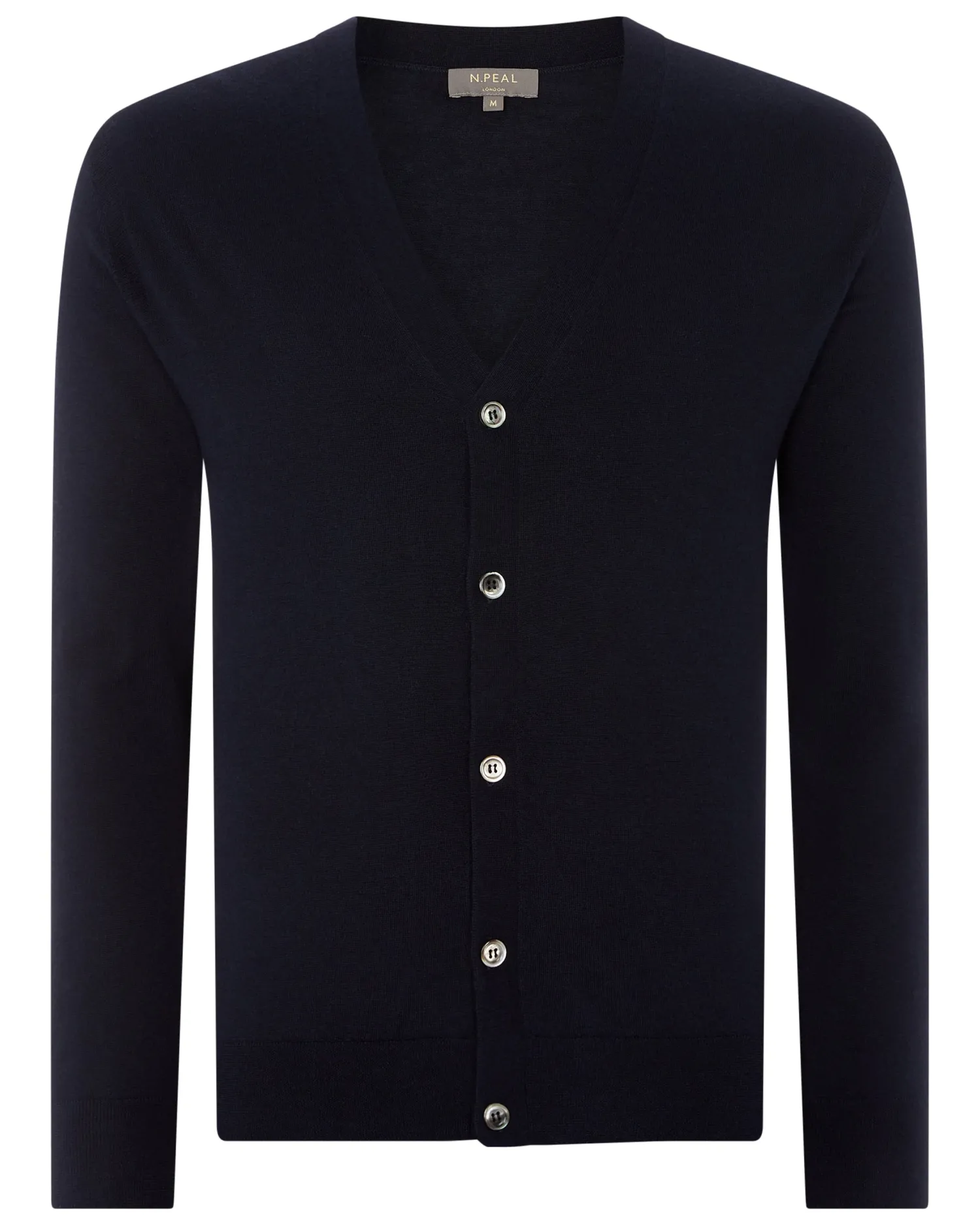 The N.Peal fine gauge cardigan, a great favourite amongst our clientele. 70% Cashmere and 30% Silk blend worsted yarn – Beautiful fine gauge weight – Silk added for a lighter smoother summer feel – Great cardigan style, so on trend – Great worn casually with a T shirt or Polo shirt – Equally good over a shirt and tie – Our fine gauge products have a naturally slimmer fit, if you’d like a looser fit (like our other products) or are between sizes, we suggest you size up- Model is wearing size Medium- Care: Hand Wash