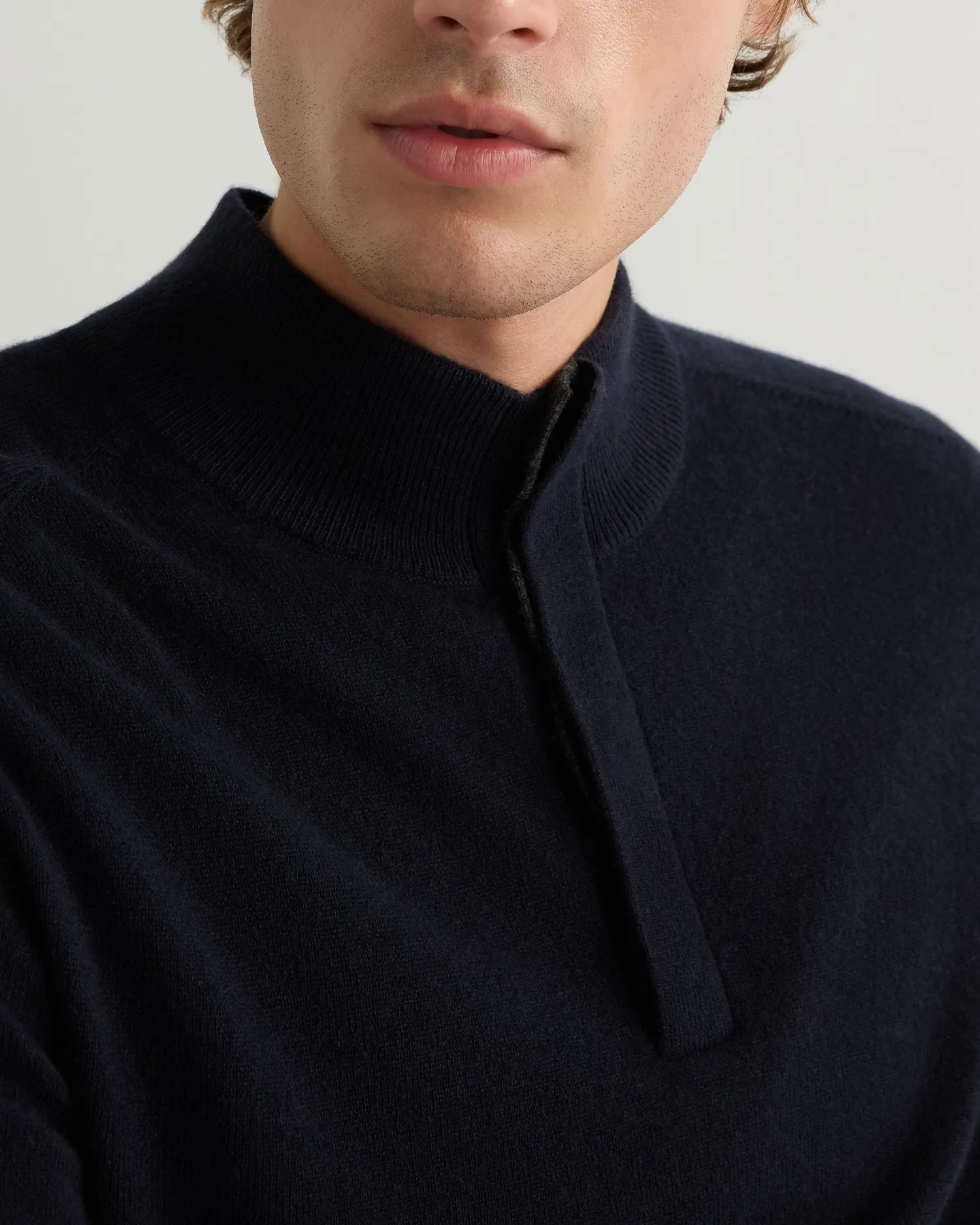 A previous popular gents’ style, brought back for the coming season. Made from 100% organic Mongolian cashmere – Dark charcoal contrast trim tipping on cuffs and hem as well as the inner placket and collar – Four button fastening – Great worn casually over a T-shirt or equally great with a more formal shirt – 2ply – Model is wearing size Medium – Care: Hand Wash Organic cashmere: organic dyes and detergents, free from fertilizer and pesticides, find out more here
