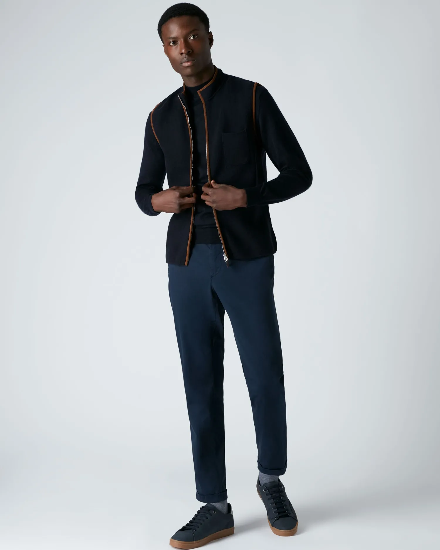 N.Peal’s finest talents combined here in the Milano suede trim gilet. 100% Mongolian organic cashmere – One breast pocket – Smart two way full length zip – Great layering piece – Milano stitch for extra texture and strength- 1Ply- Model is wearing size Medium- Care: Hand Wash Organic cashmere: organic dyes and detergents, free from fertilizer and pesticides, find out more herenFind our full range of Men’s Cashmere Gilets here.
