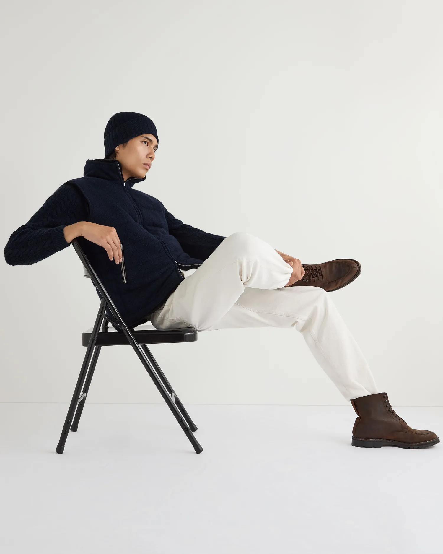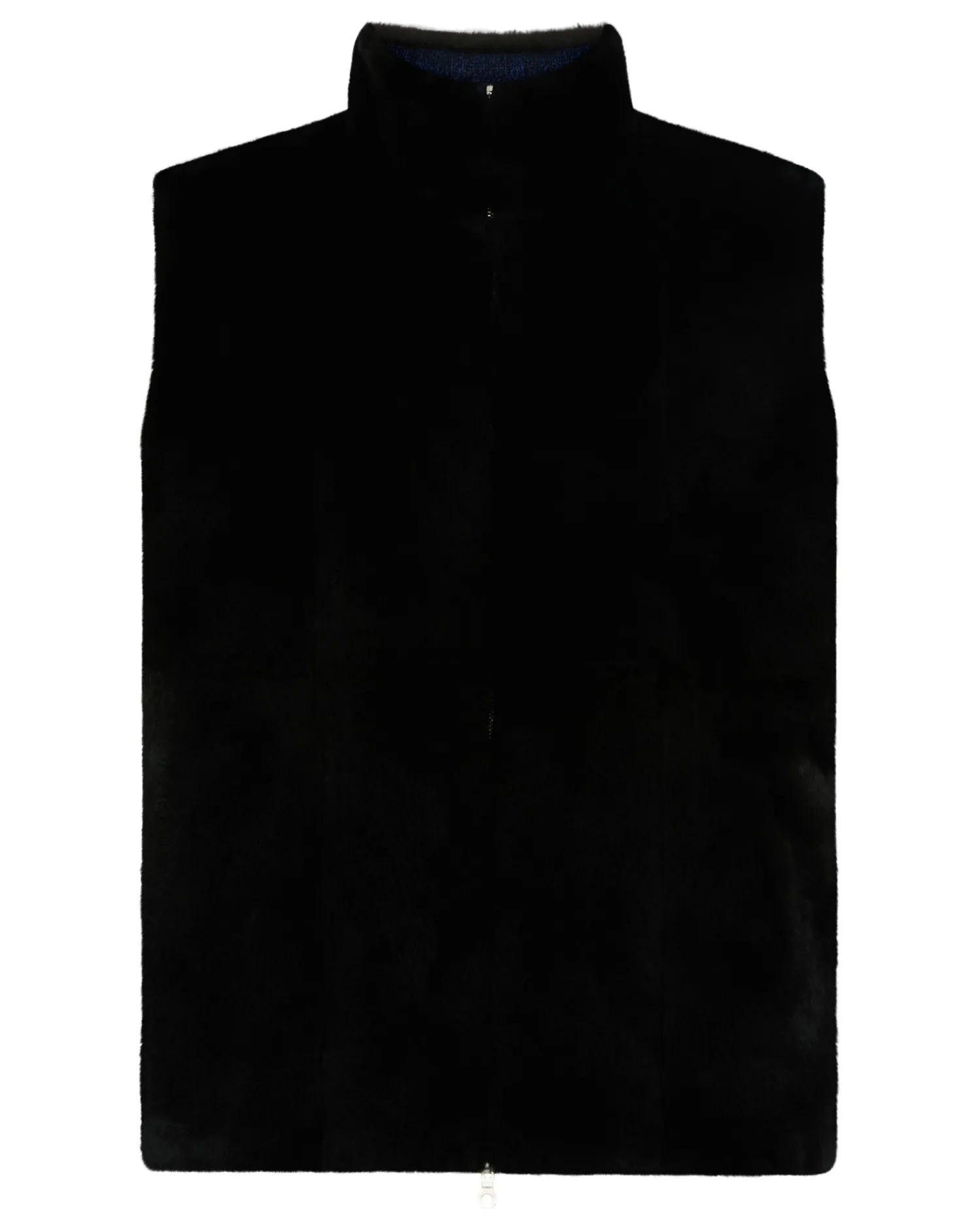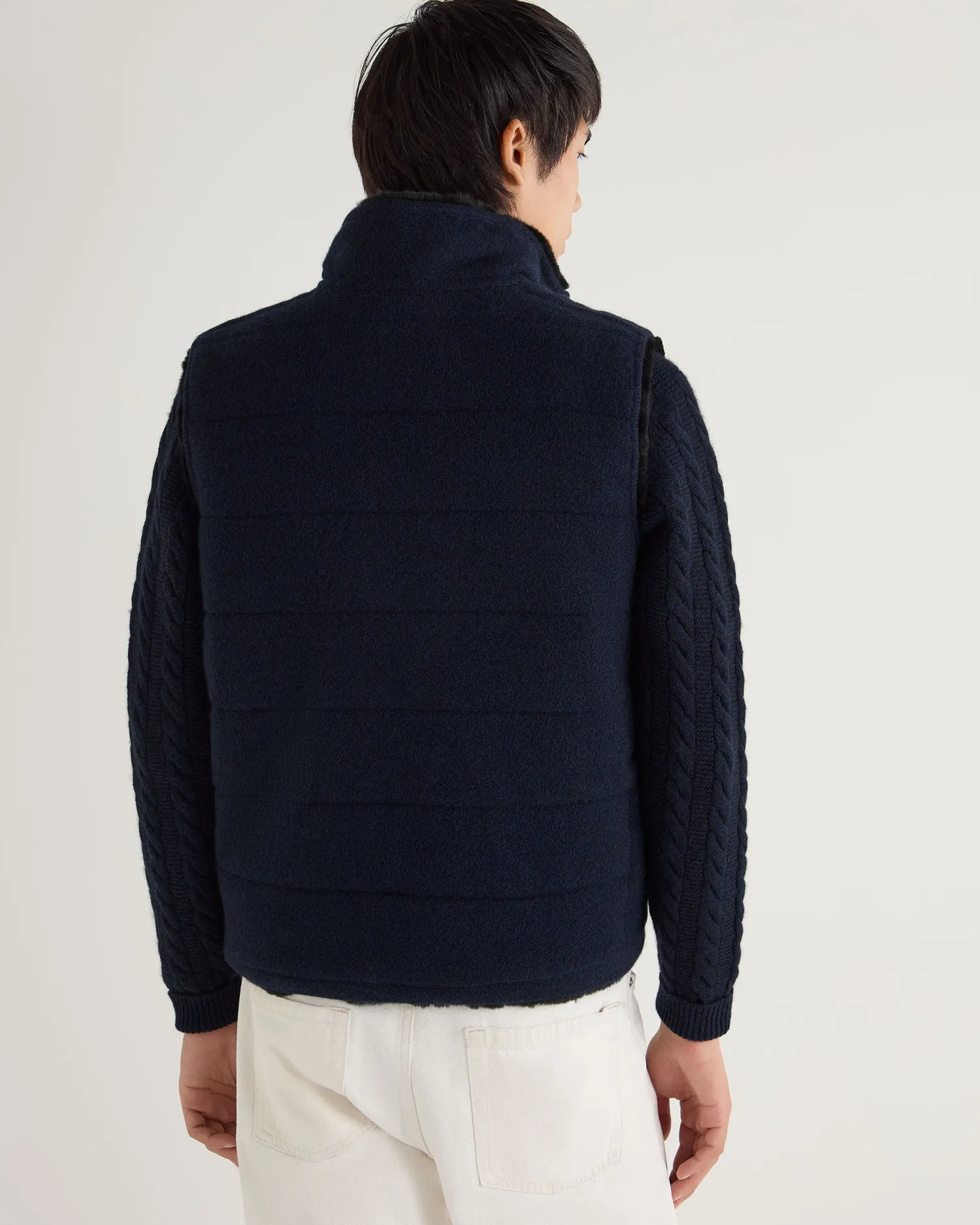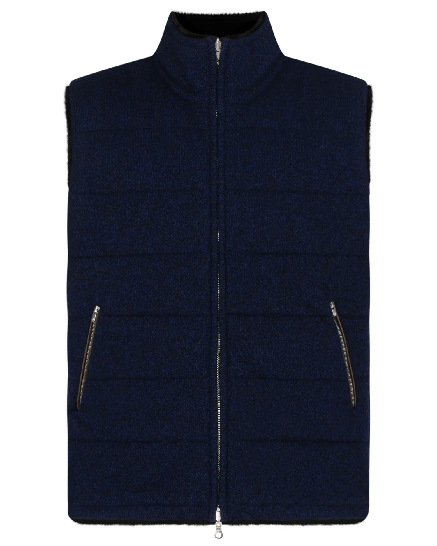 True luxury in a gilet – fur lined cashmere, what could be better? 100% cashmere and navy blue Rex fur – Quilted two layers of cashmere – Inner cotton down filling – Reverse in 100% rex fur with deep pile – Velvety texture – Fur attached by hand – Stunning gilet providing warmth, comfort and style – 1ply – Model is wearing size Medium – Care: Dry Clean Only