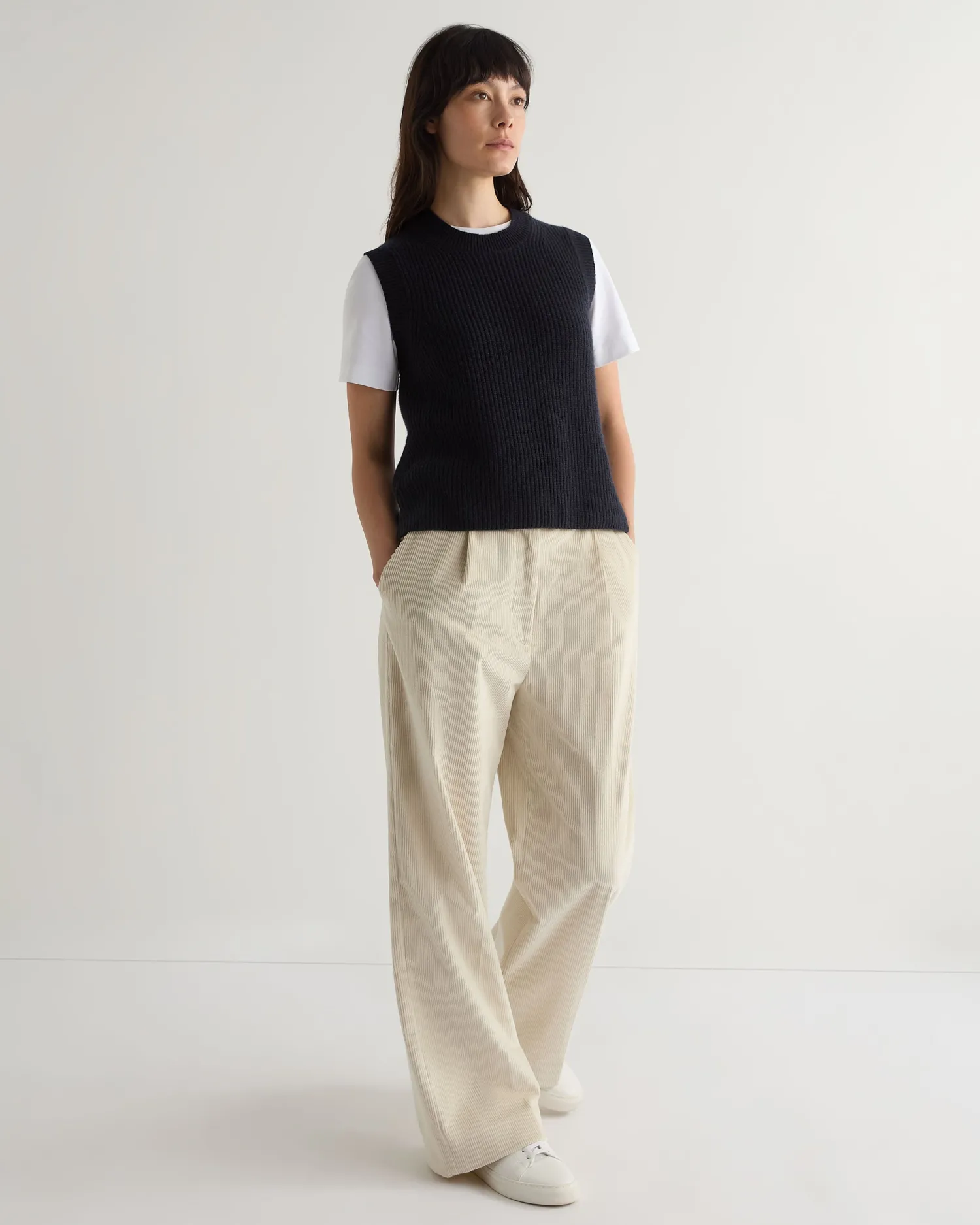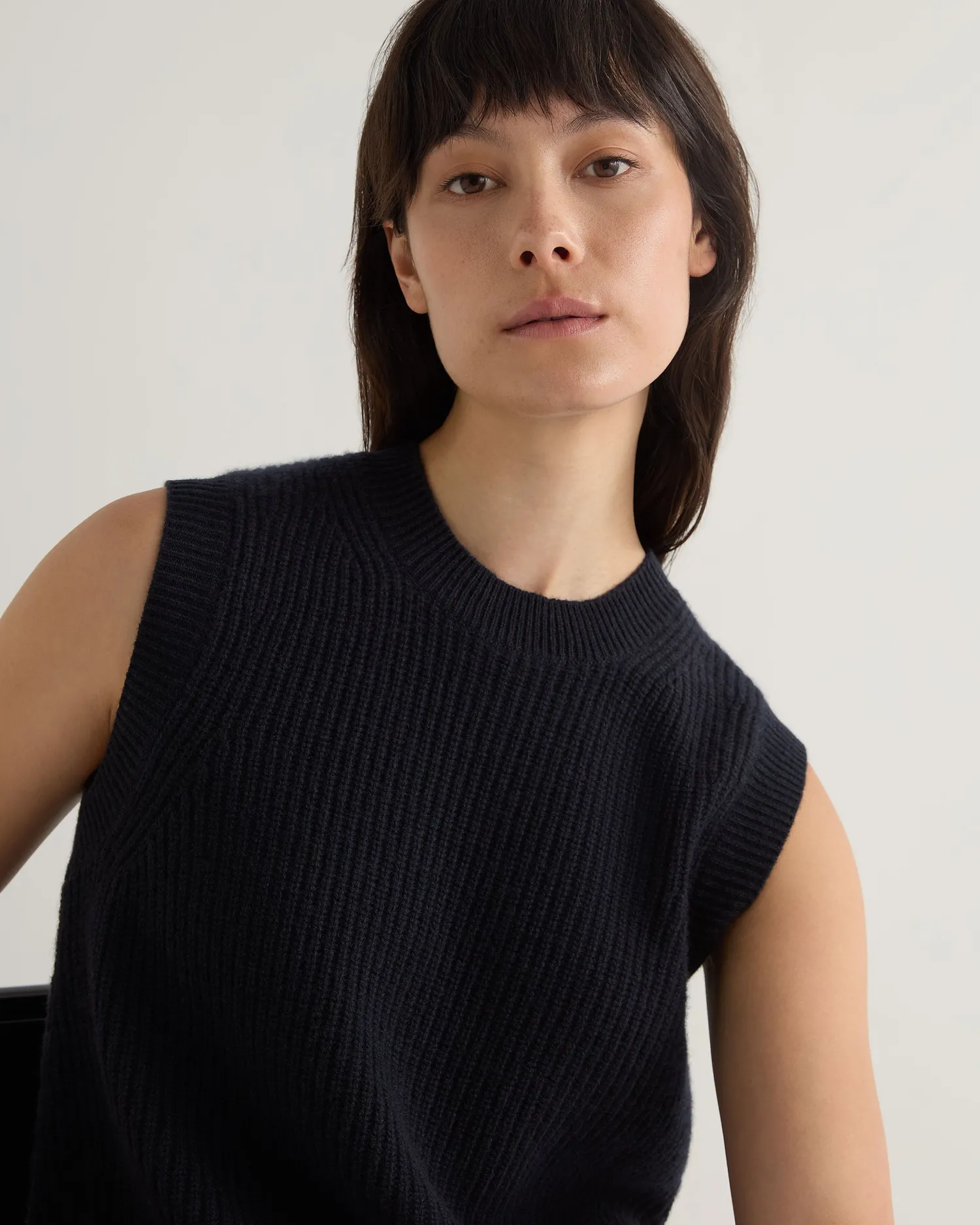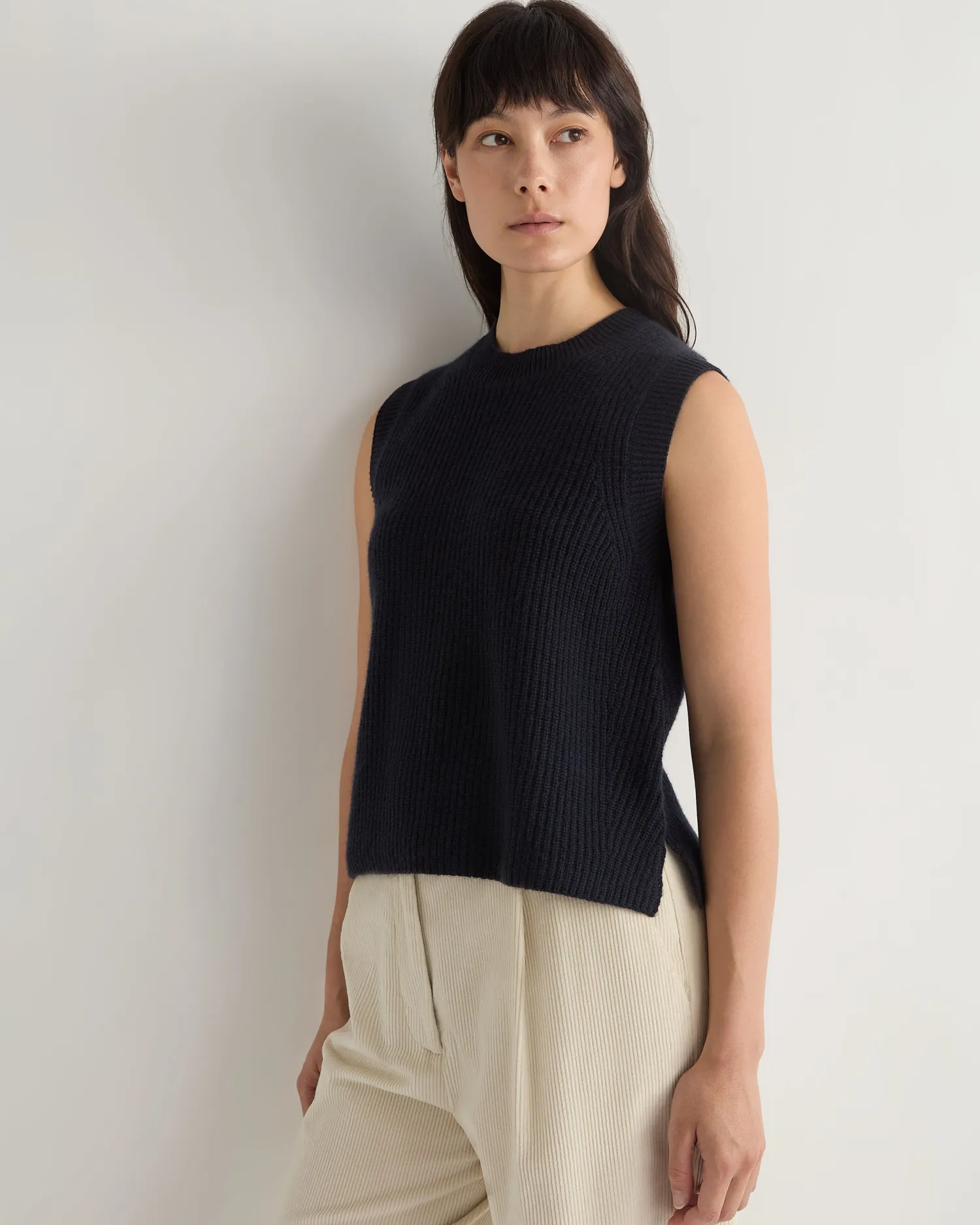 This completely new sleeveless ribbed sweater is the perfect blend of sophistication and comfort. Made from the finest cashmere, this versatile piece offers a luxurious feel against the skin while providing a sleek, contemporary look. Made from 100% Mongolian organic cashmere – Luxurious and comfortable – Popular ribbed knit design – Ideal for layering or wearing solo, suitable for various occasions – 2ply – Model is wearing size Small – Care: Hand Wash Organic cashmere: organic dyes and detergents, free from fertilizer and pesticides, find out more here