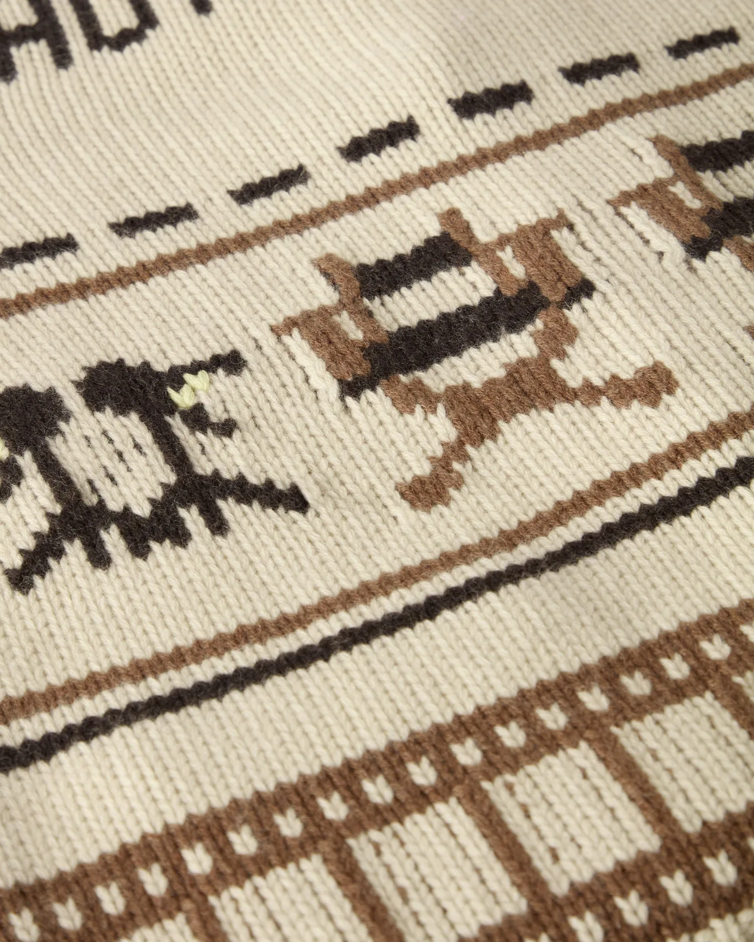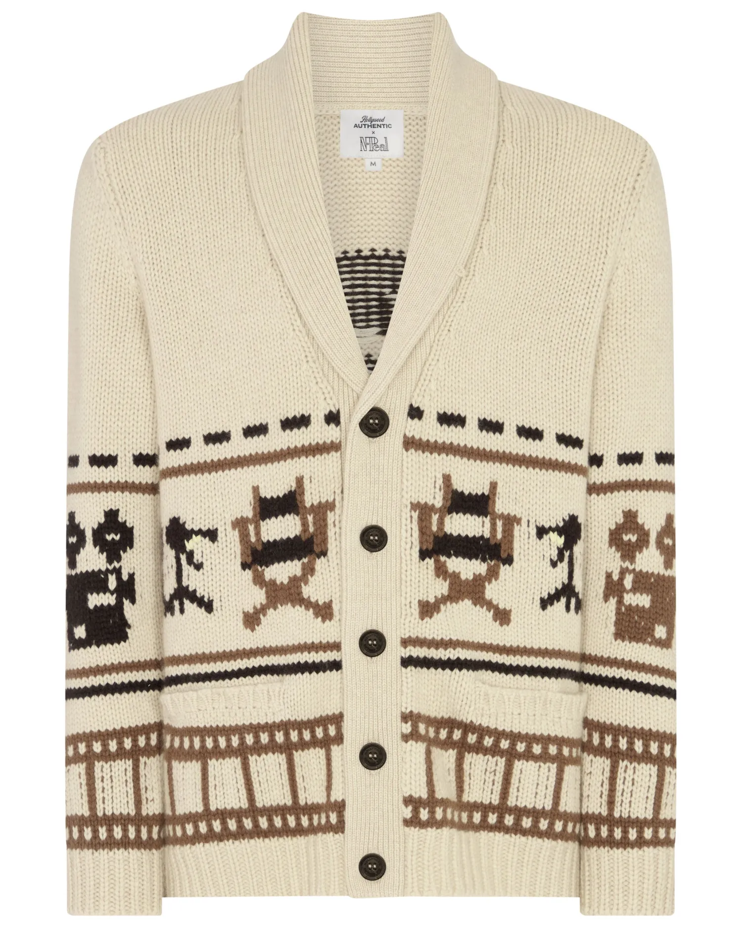 This shawl collar cardigan takes its inspiration from two diverse sources, from Jeff Bridges’ ‘The Dude’, to the shawl cardigan worn by Marilyn Monroe in her final photoshoot. The Hollywood Authentic Shawl Cardigan is an ode to the silver screen. Generous shawl collar style with five ‘Hollywood Authentic’ buttons to fasten and one on shawl collar- Expertly crafted from 100% organic Mongolian cashmere of the highest quality- `Hollywood Authentic’ intarsia detail on reverse- Intarsia design also features iconic Hollywood motifs: Director’s chair, Studio lights and celluloid film reel- Two hidden front pockets- 8ply- Hand Wash