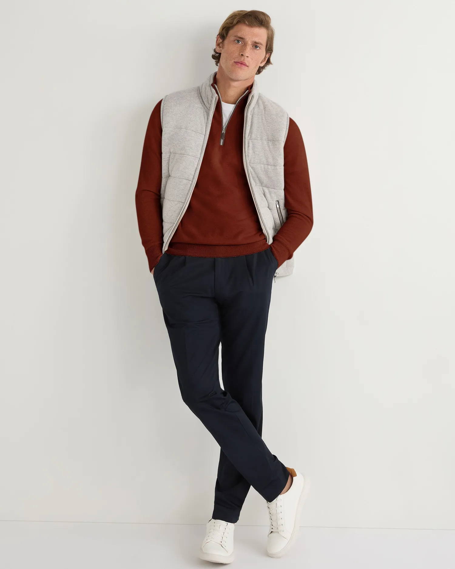 The Carnaby is shown here – a half zip cashmere sweater, beautiful in design and cut. 100% Mongolian organic cashmere – Elegant half zip – Alcantara piping – Smart leather toggle – Dark charcoal grey contrast trims- Perfect layering piece – Superb colour selection – 1ply – Model is wearing size Medium – Care: Dry Clean Only Organic cashmere: organic dyes and detergents, free from fertilizer and pesticides, find out more here