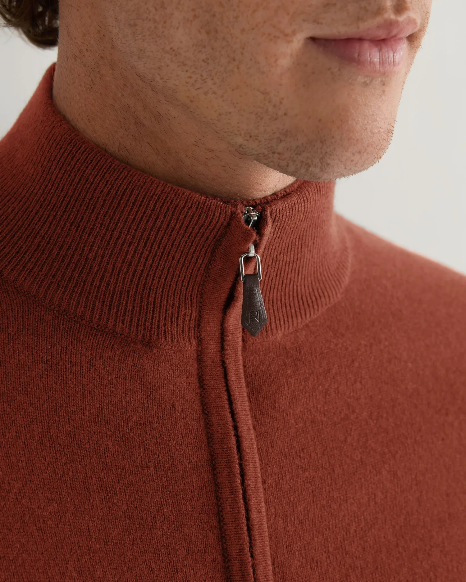 The Knightsbridge zip cashmere sweater, a wonderfully versatile design to add to your cashmere collection. 100% Mongolian organic cashmere – Full length zip with smart leather toggle – Simple design with dark charcoal grey contrast trims – Perfect layering piece – 1ply – Model is wearing size Medium – Care: Dry Clean Only Organic cashmere: organic dyes and detergents, free from fertilizer and pesticides, find out more here