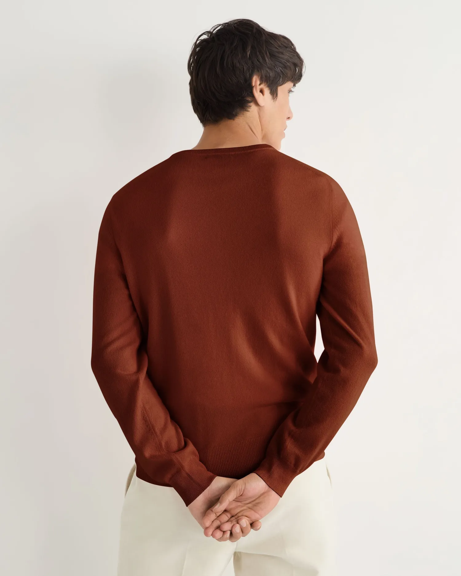 N.Peal’s best selling Oxford round neck cashmere sweater in 1ply, true luxury in cashmere. Crafted from 100% Mongolian organic cashmere – The most famous N.Peal sweater out there! – As worn by the character of James Bond in Skyfall – Extremely popular piece due to its 007 credentials – A luxurious sartorial staple – Perfect for all seasons – Sells out regularly, particularly in Blue Wave! – 1ply – Model is wearing size Medium – Care: Hand Wash Organic cashmere: organic dyes and detergents, free from fertilizer and pesticides, find out more here