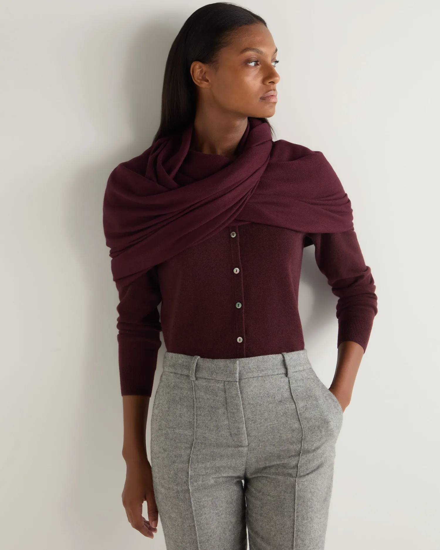 N.Peal’s world famous cashmere woven pashmina shawl, stylish and beautiful to wear. n 100% Mongolian superfine cashmere Available in an enchanting array of colours Measures 200x90cm Would make a perfect gift Care: Dry Clean Only