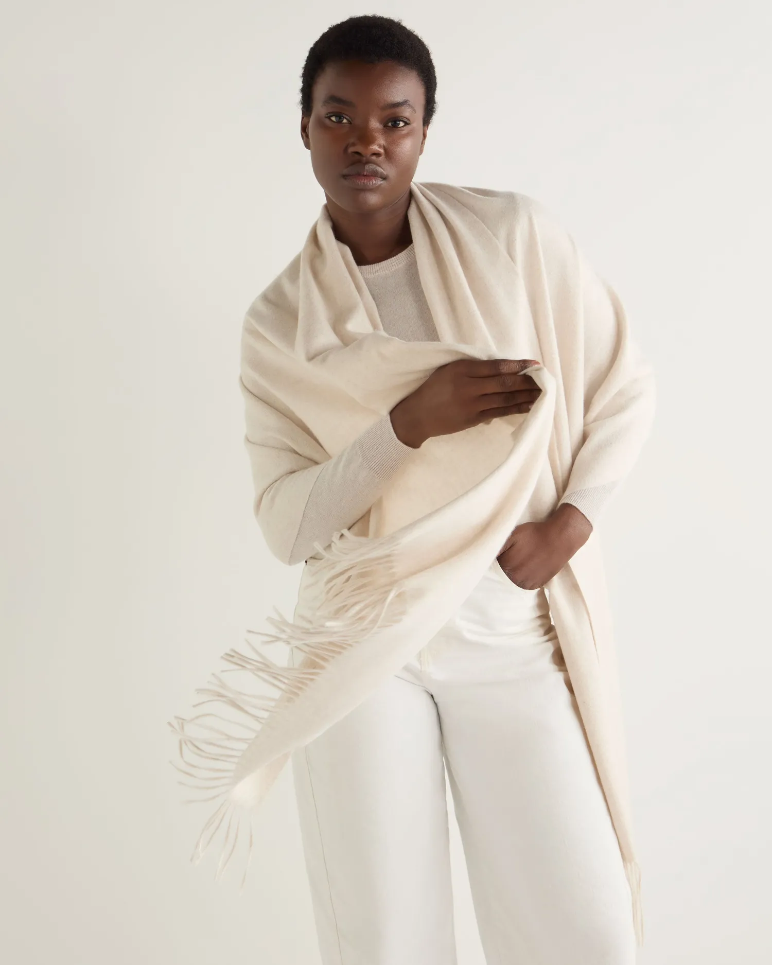 Here is N.Peal’s beautiful cashmere woven shawl. n Made from 100% Mongolian cashmere A favourite with N.Peal aficionados Measures 200x75cm plus delicate fringe edging at both ends Woven cashmere with a luxurious finish Available in a beautiful selection of colours Perfect for travelling Can double as a bed or sofa throw Would make a generous gift Care: Dry Clean Only