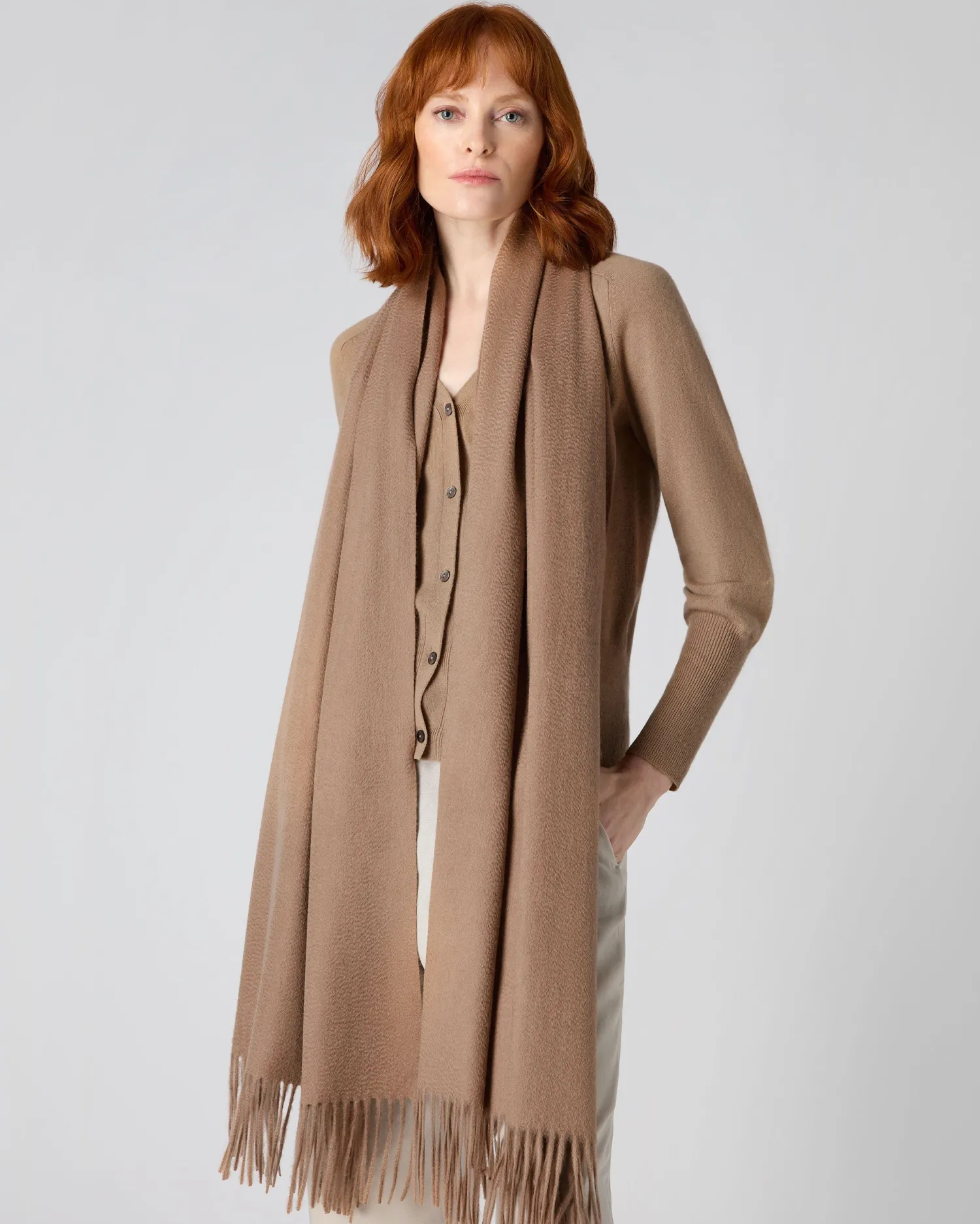 Here is N.Peal’s beautiful cashmere woven shawl. n Made from 100% Mongolian Cashmere A favourite with N.Peal aficionados Measures 200x75cm plus delicate fringe edging at both ends Woven cashmere with a luxurious finish Available in a beautiful selection of colours Perfect for travelling Can double as a bed or sofa throw Would make a generous gift Care: Dry Clean Only